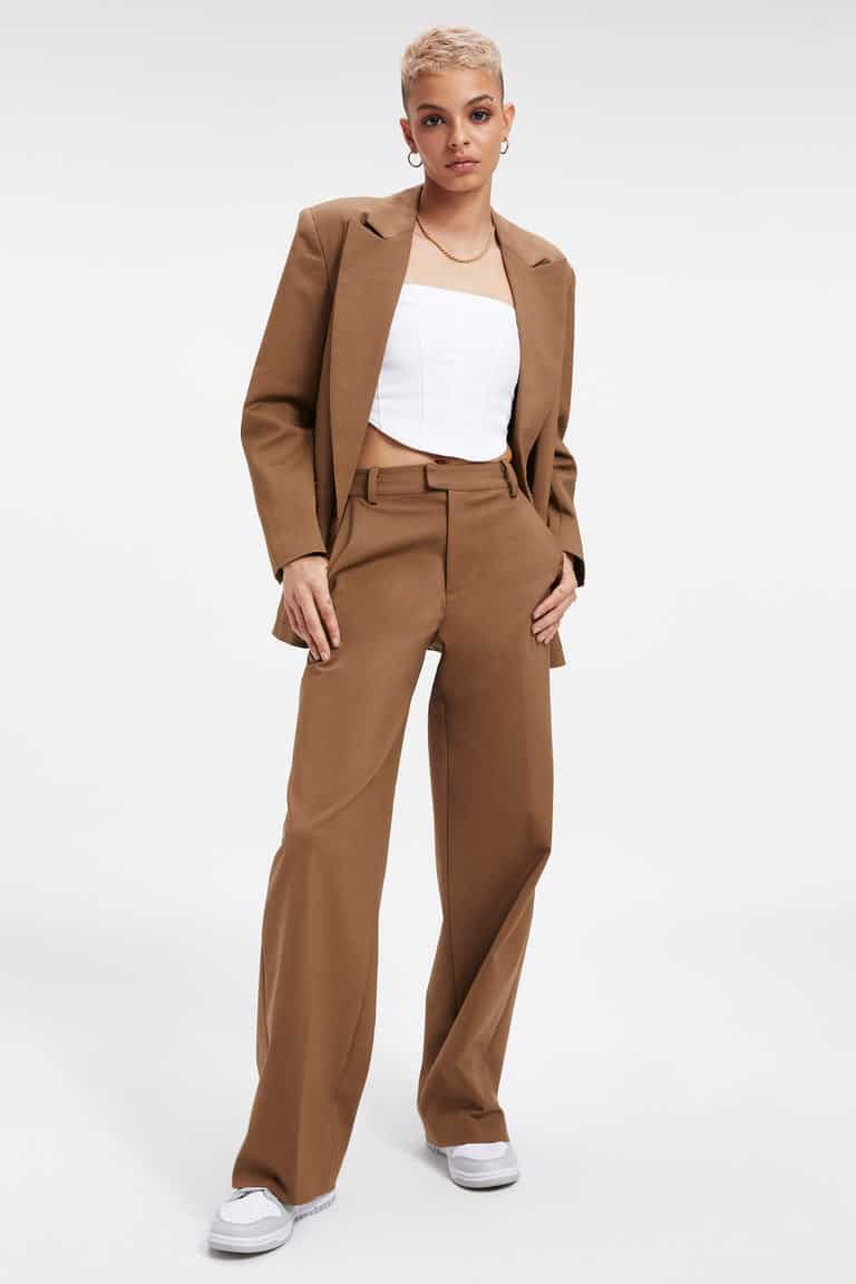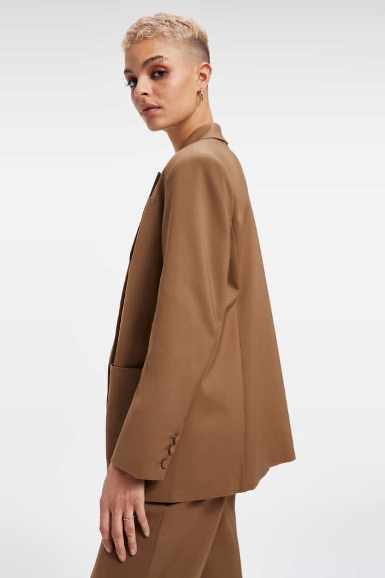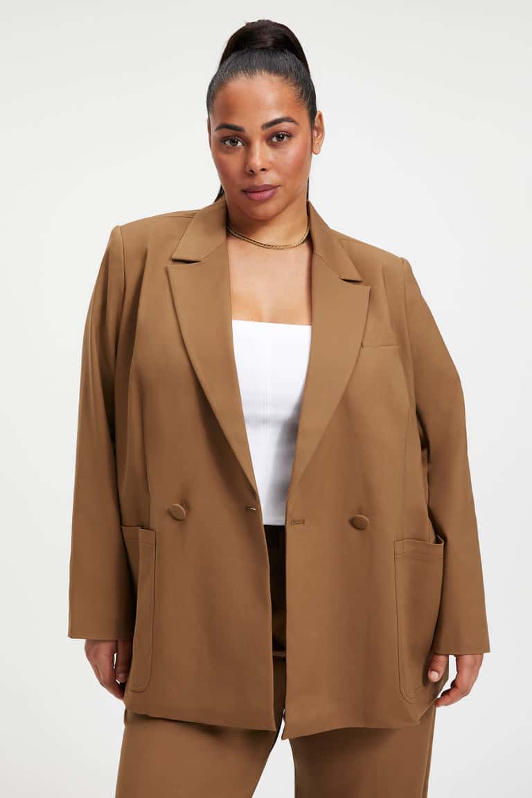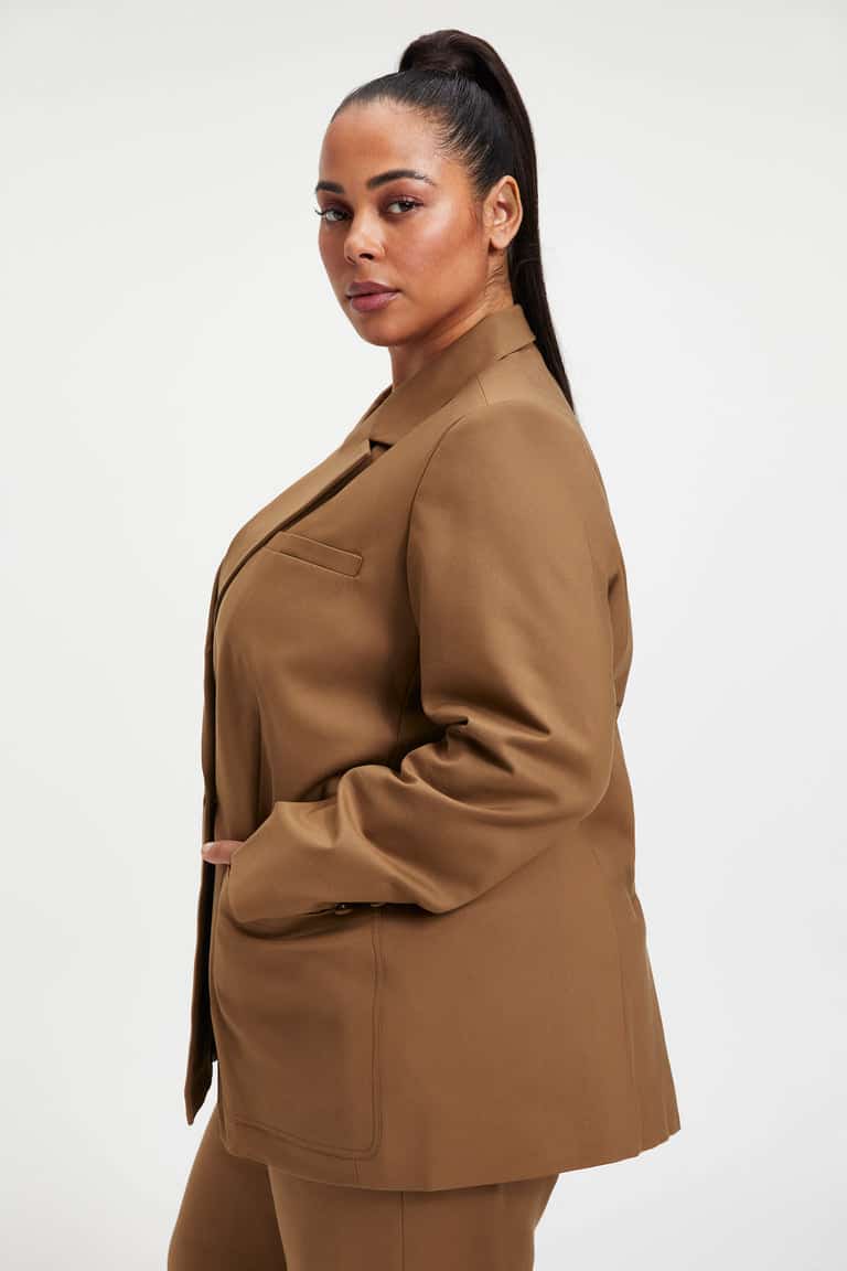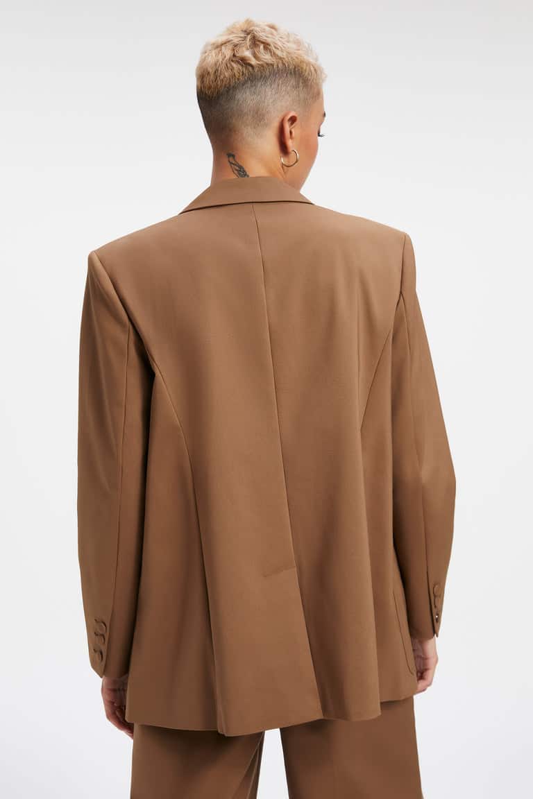 We're obsessed with this Good American Unisex Blazer in Sepia 001. The fit always strikes the right balance between modern and timeless. Featuring long sleeves, a lapel collar and double breasted oversize fit.