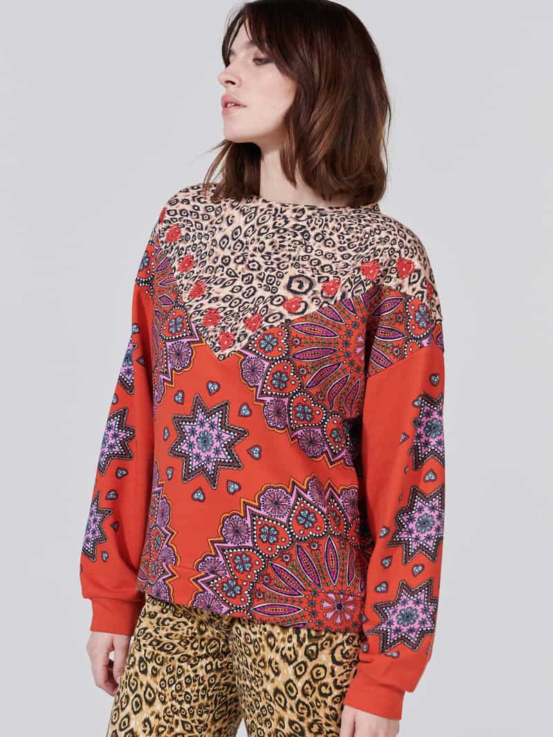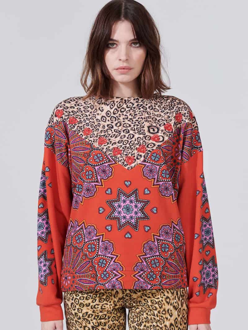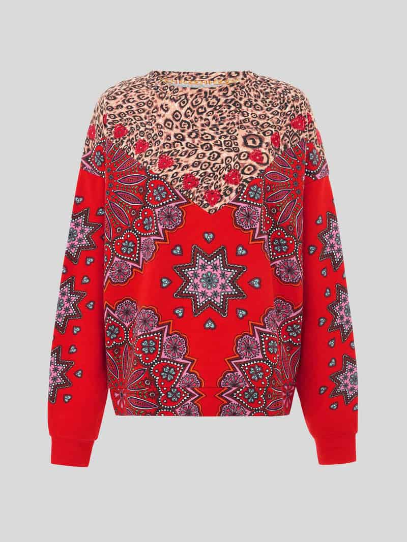 The Hayley Menzies Dalton Embroidered Sweatshirt in scarlet is maximum comfort meets maximalism. This sweatshirt is made of 100% cotton and has a loose, comfortable fit. It blends two eye-catching designs that clash for an audacious more-is-more statement. Wear this casual essential with a silk midi or a pair of straight-leg jeans.
