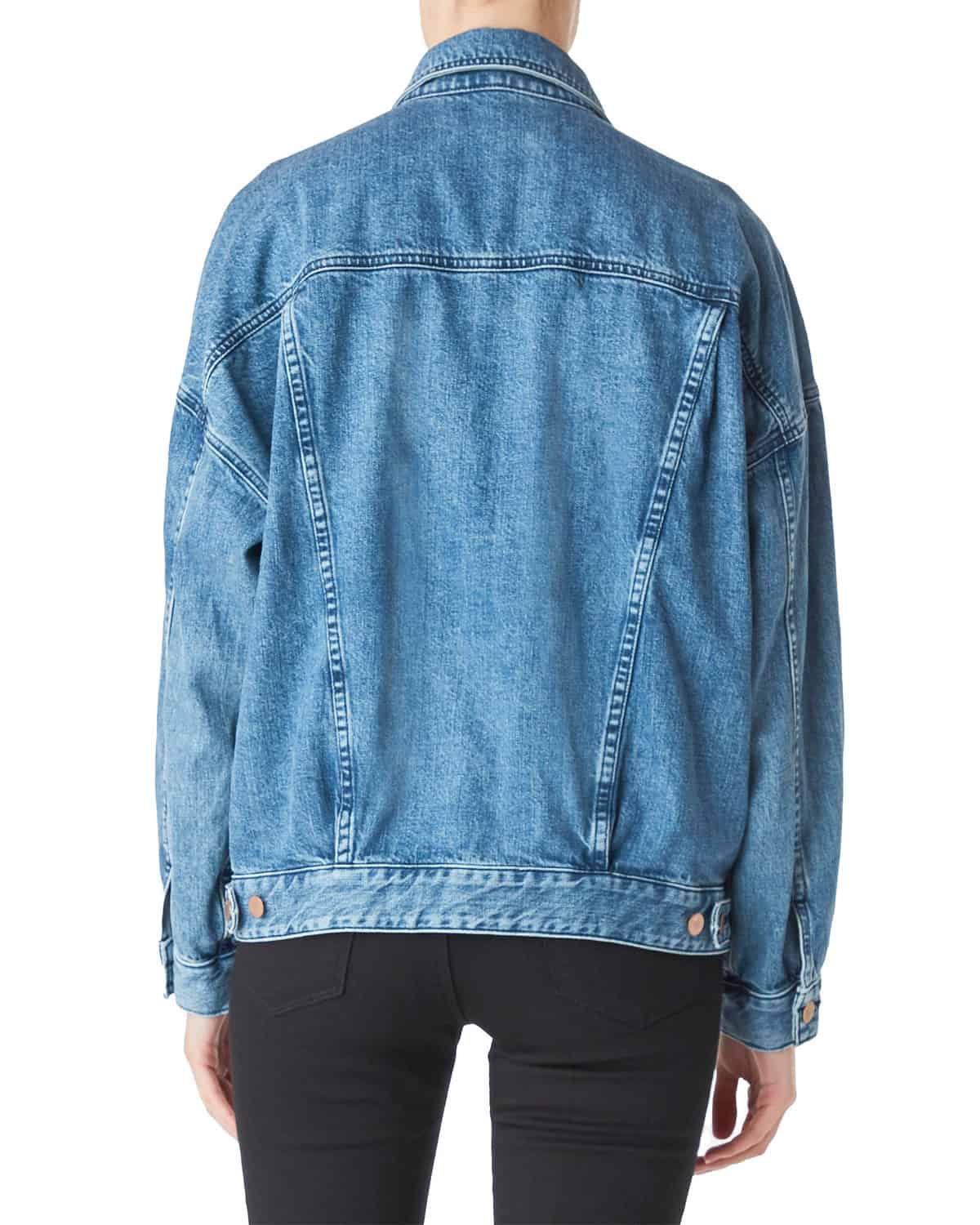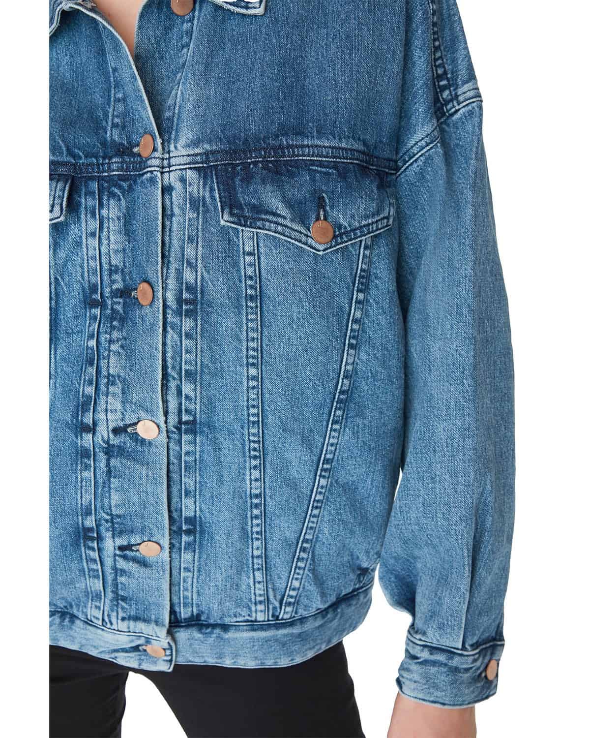 The J Brand Drew Oversized Jacket in Varsha is the oversized denim jacket of your dreams. Perfect for draping or wearing traditionally, Drew is a necessary addition to your closet. An exaggerated iteration of a classic trucker style, featuring button-front closure, slightly ballooned sleeves, and on-seam side pockets. The wash process utilizes 90% less water, on average.