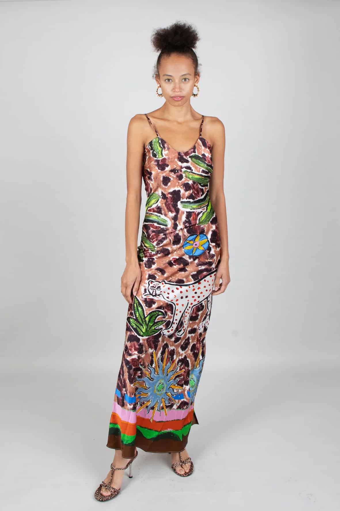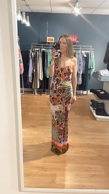 The Jessica Russell Flint Lolana Maxi Slip Dress Lolana is set to wow this summer. This full length statement slip dress is ultra flattering featuring cami straps, a v neckline and a slim fit. This will be your new favourite maxi, pair with a cropped cardigan for cooler days.