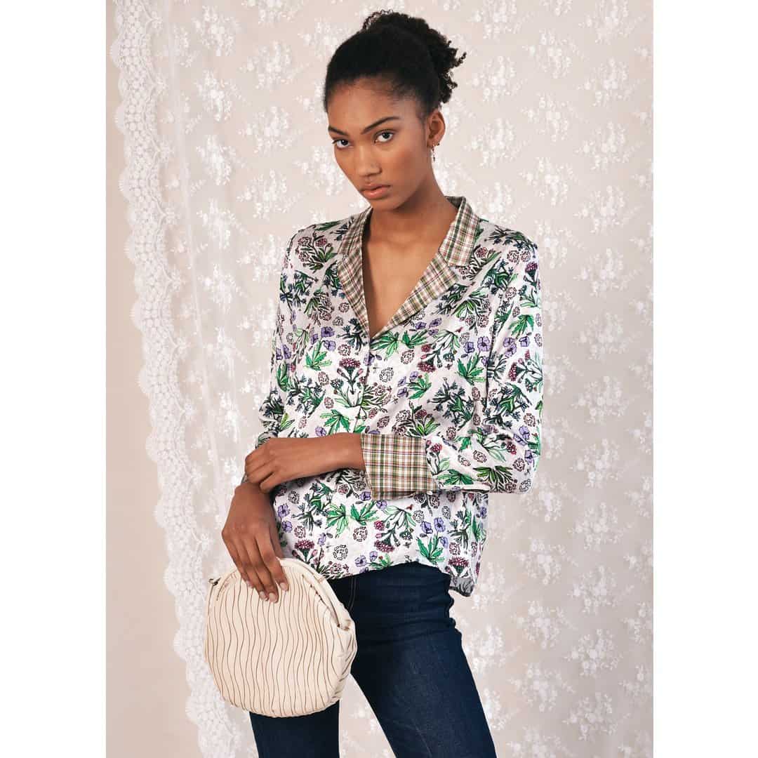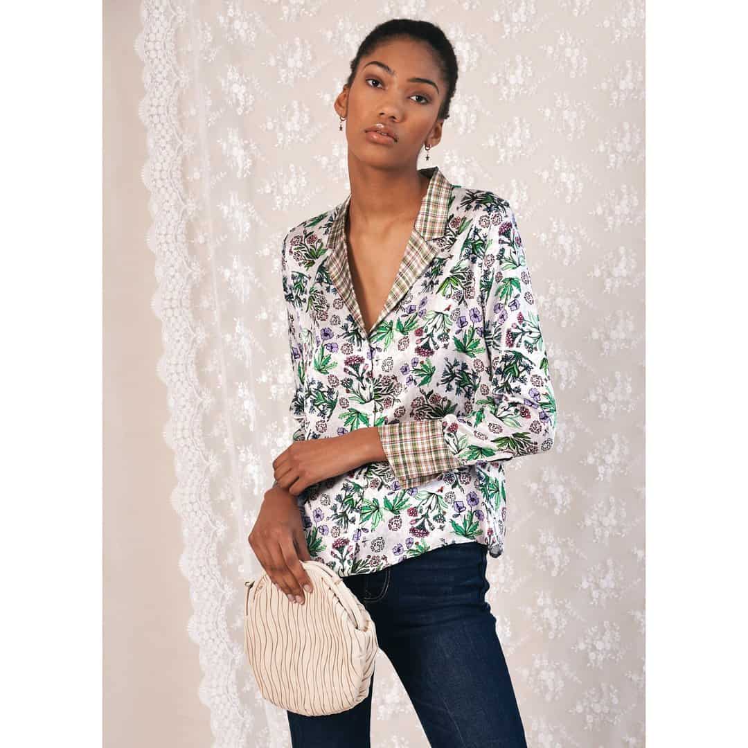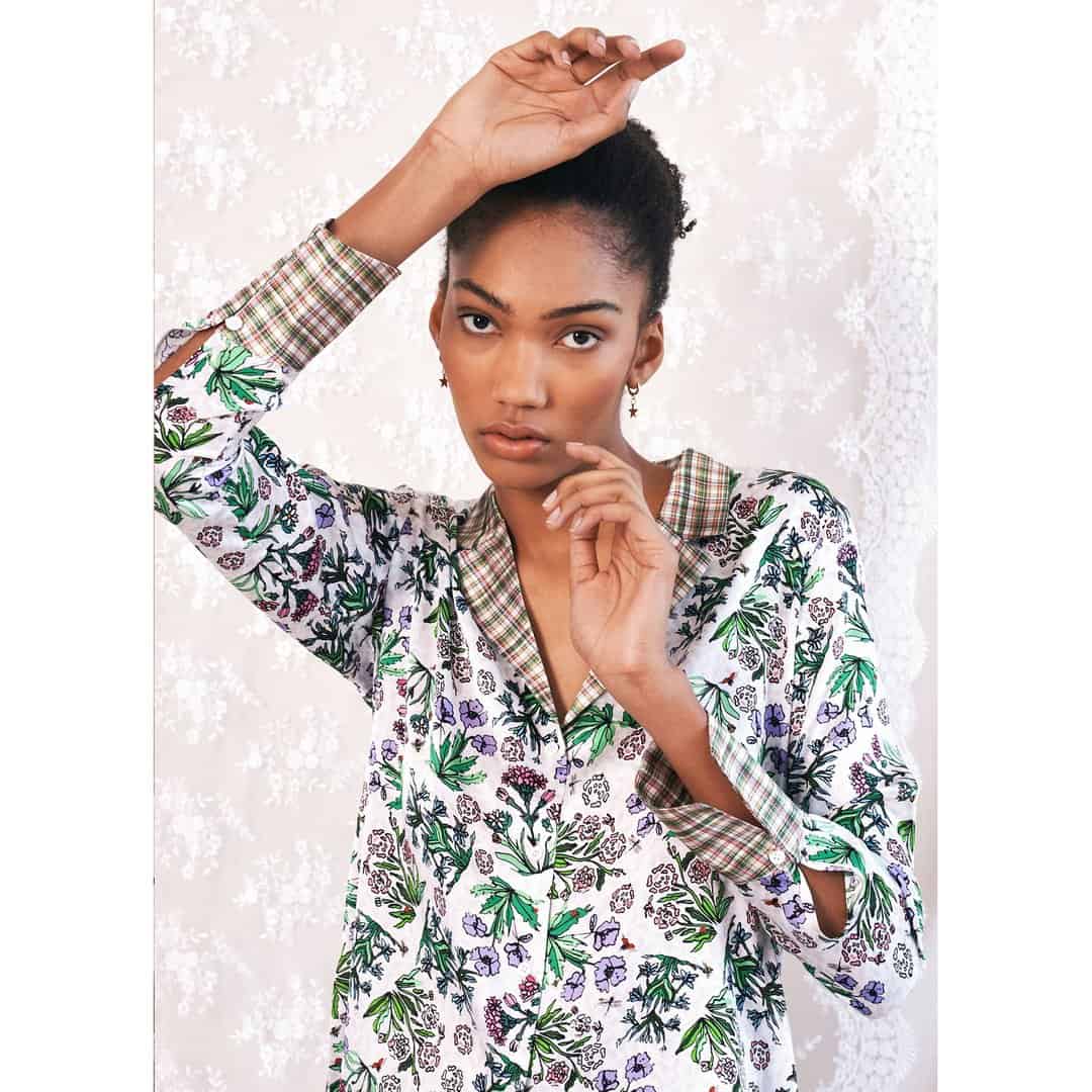 This Jessica Russell Flint shirt showcases our “Celia's Garden” print; delicate, quintessential, and hand drawn. This print is inspired by a beautiful British garden in summertime; birds chattering, bees humming, the warm sun on your face, and someone pottering in the flowerbeds nearby.... it has been named after Jessica's newly born daughter Celia.