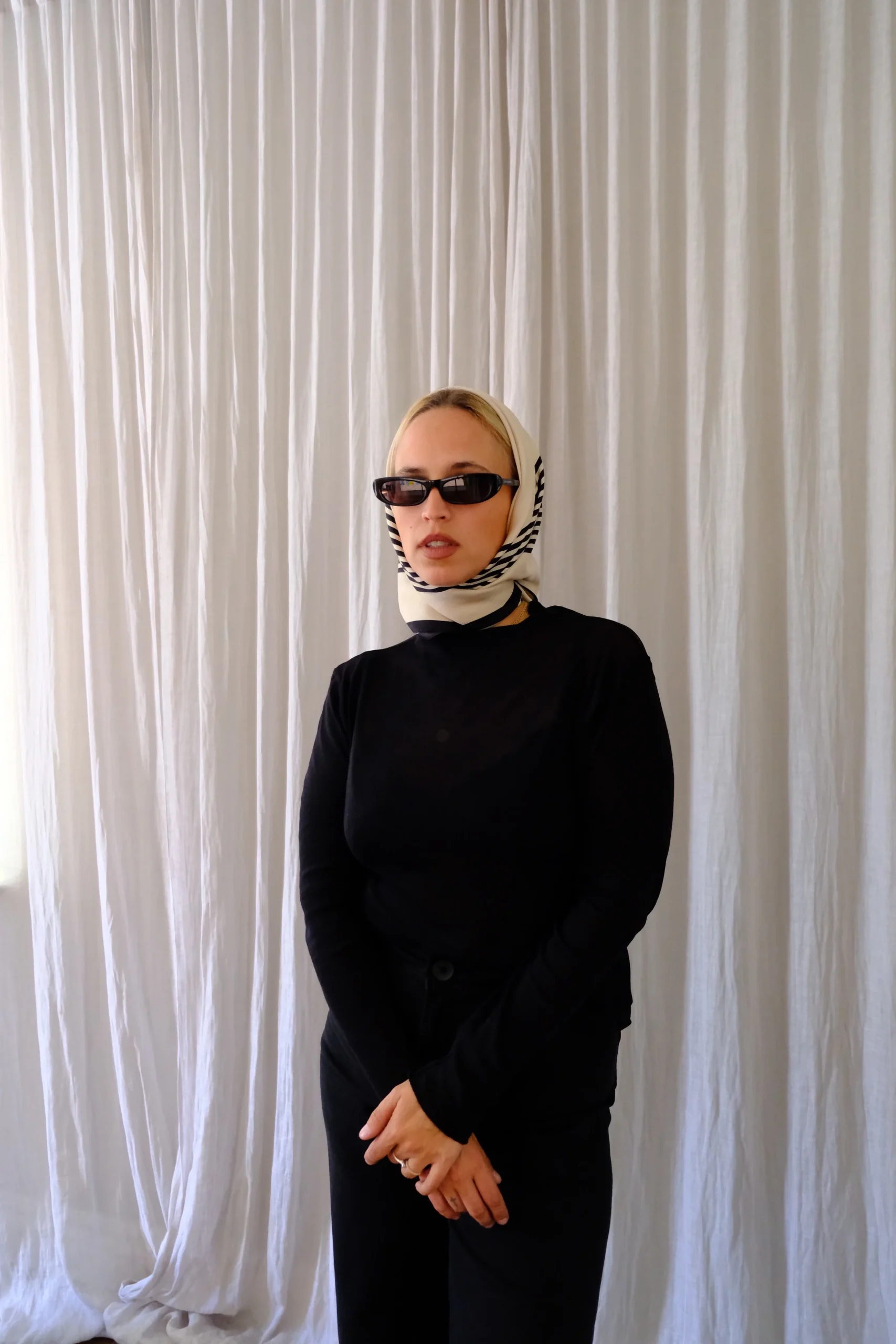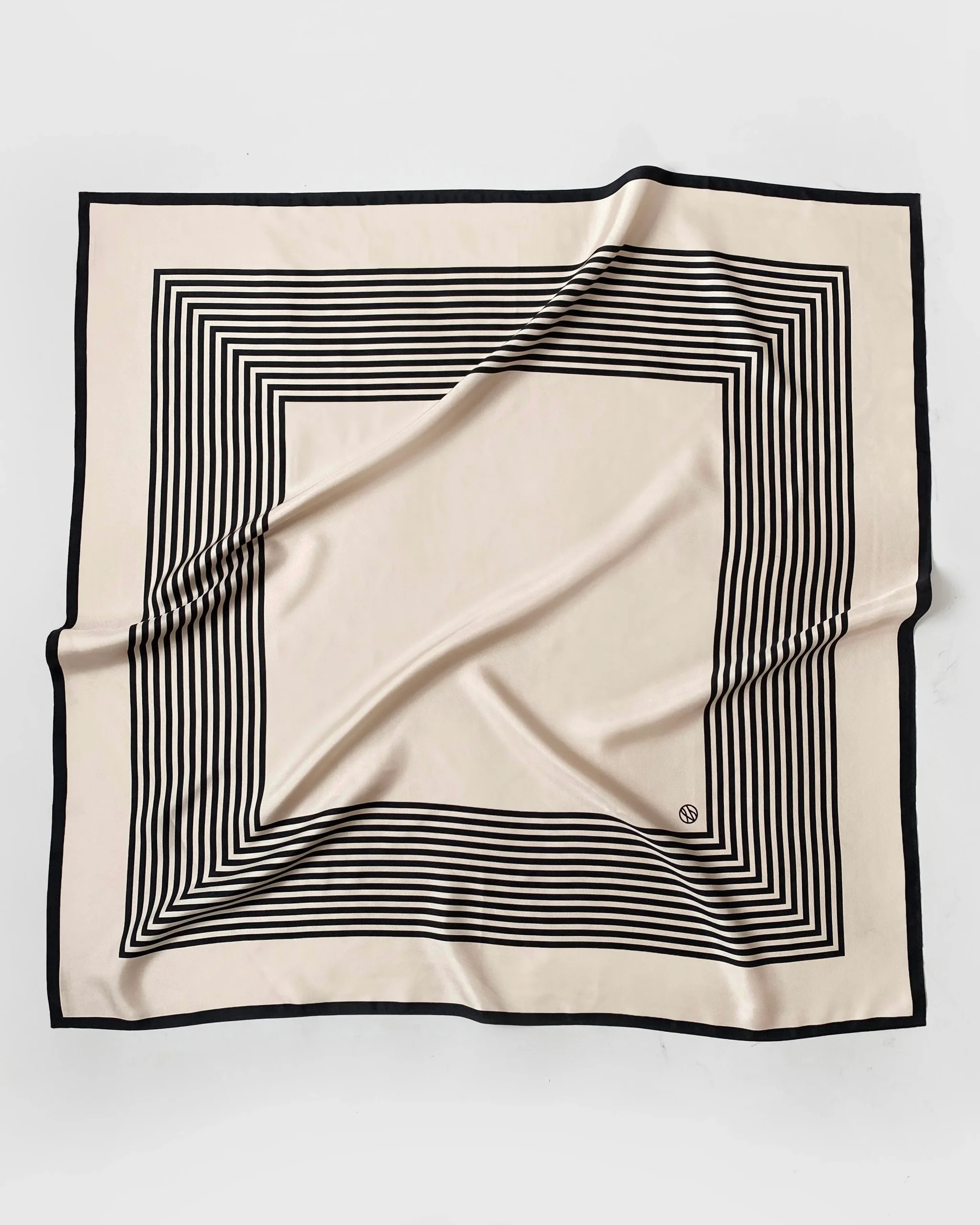 Le Scarf L1001 Silk Scarf 90cm x 90cm Sand & Black Sand & Black