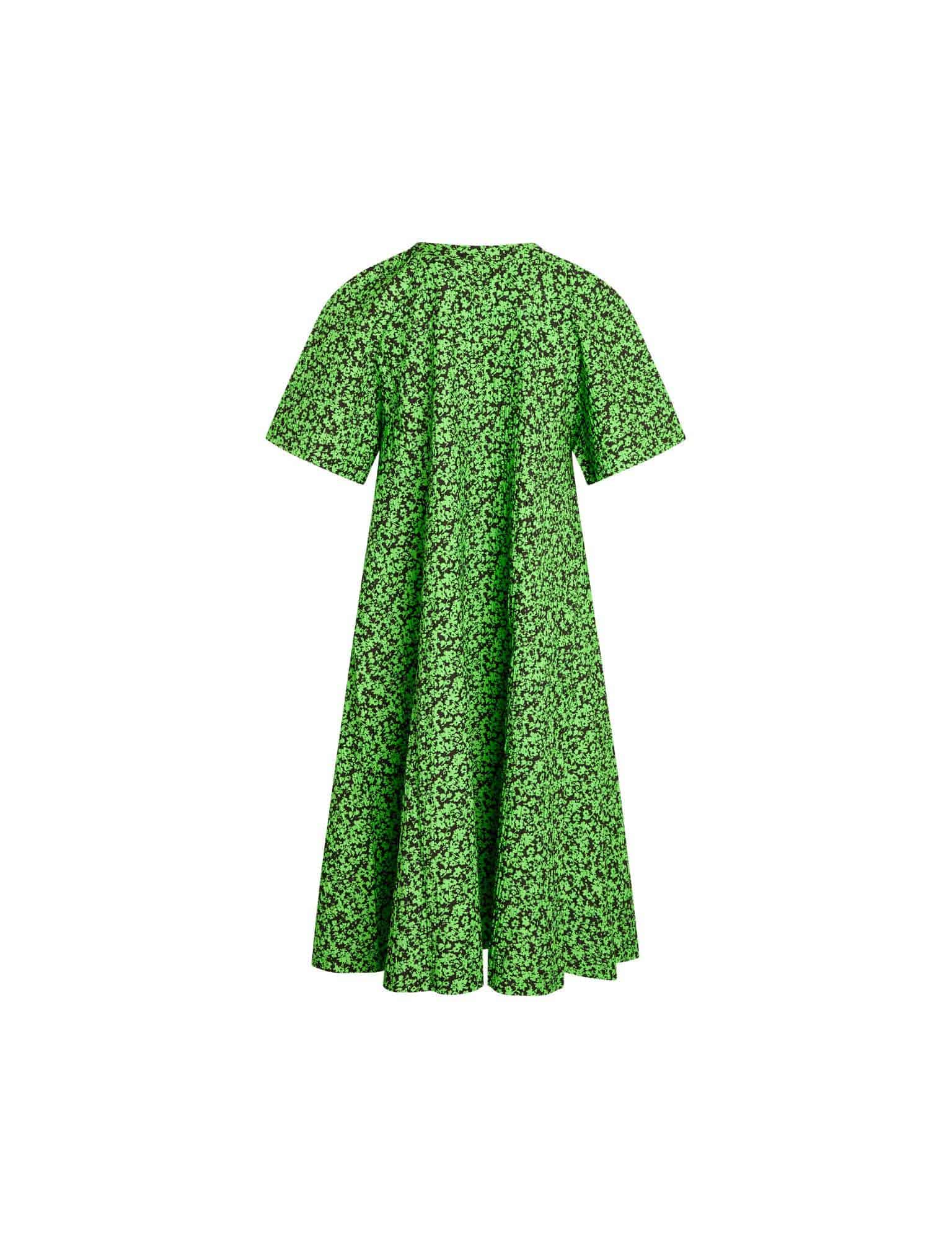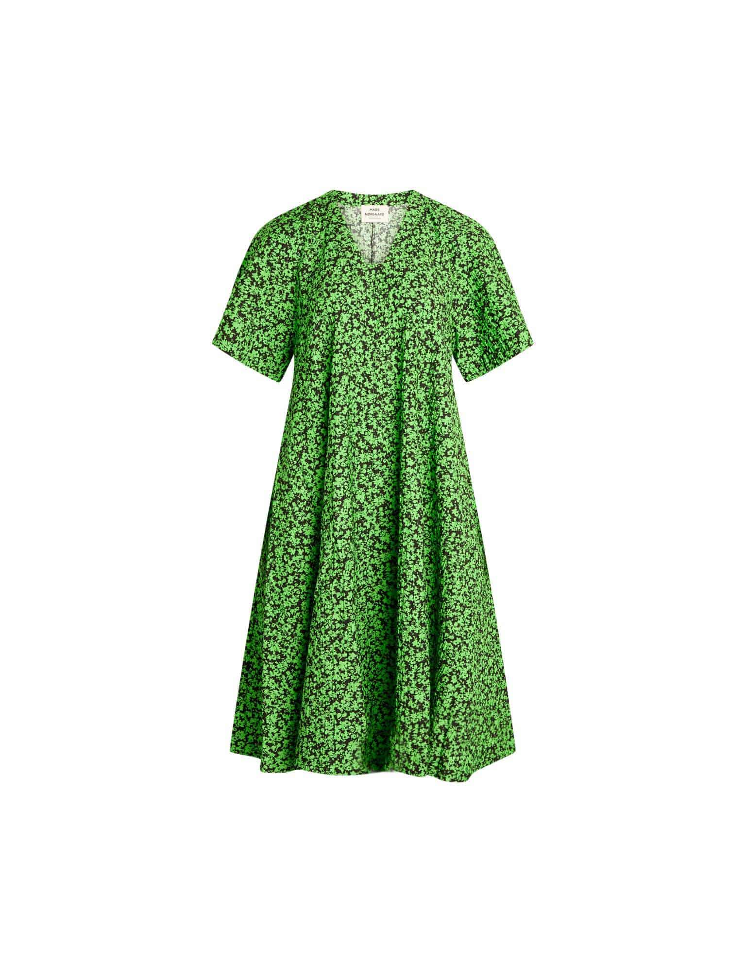 The Mads Norgaard Trish dress in classic green/black is is a oversized short sleeve dress made from a cotton mix fabric with a slightly 3D surface effect to it. The A shape dress is very voluminous and the striking green flower and leaf print on the black base is one guaranteed to get you noticed. In the colour of the season, this dress can easily be dressed up or down depending on how your feeling.