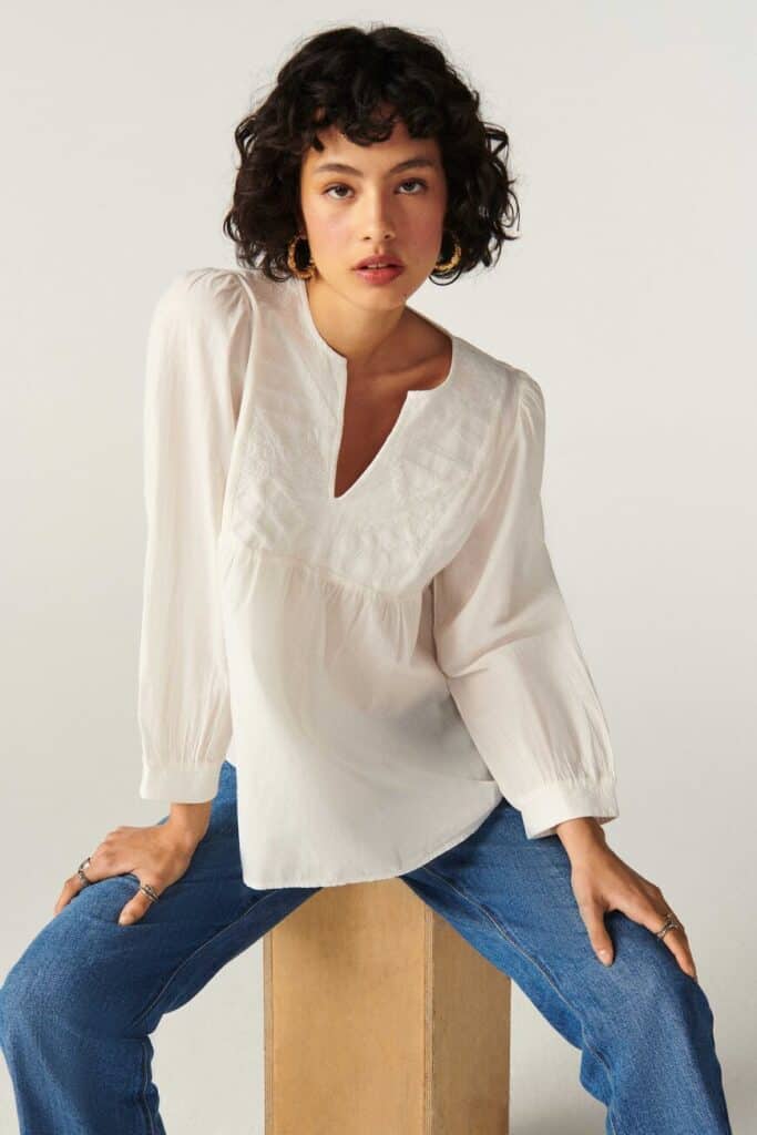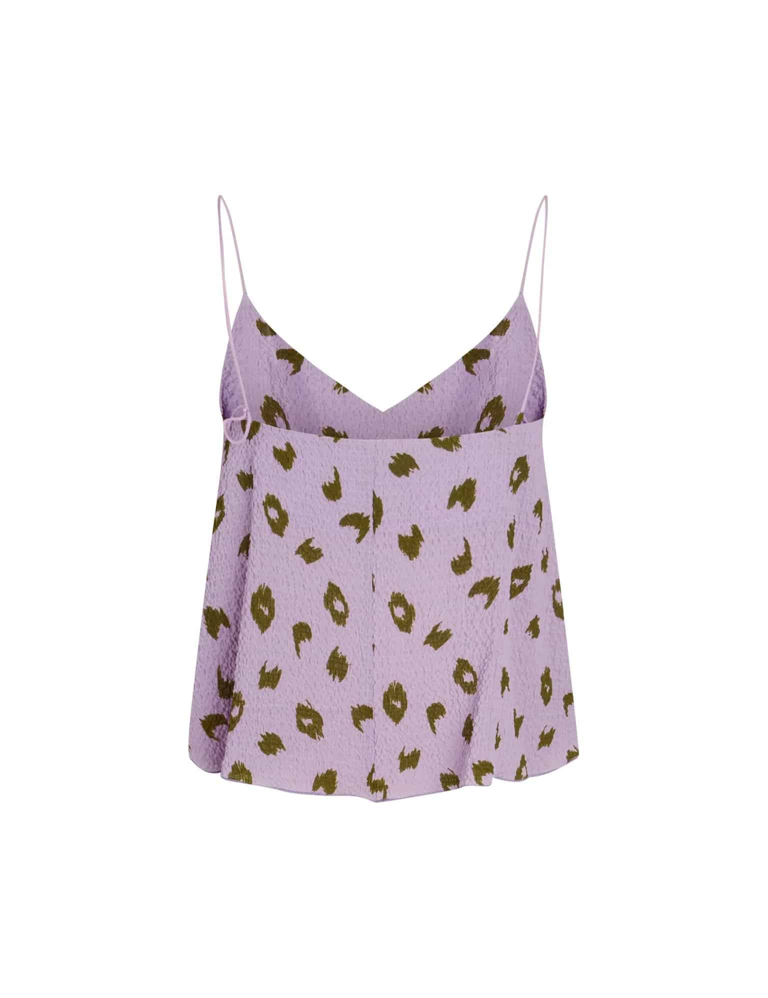 The Mads Norgaard Sontra top in bumpy flower brushed dot lavendula is a lingerie inspired strappy top in a gorgeous purple hue. The top has a seersucker texture, v neck and thin straps. It can be styled with the coordinating Penzlin pants or worn on its own with a pair of jeans and a blazer for an effortlessly stylish look.