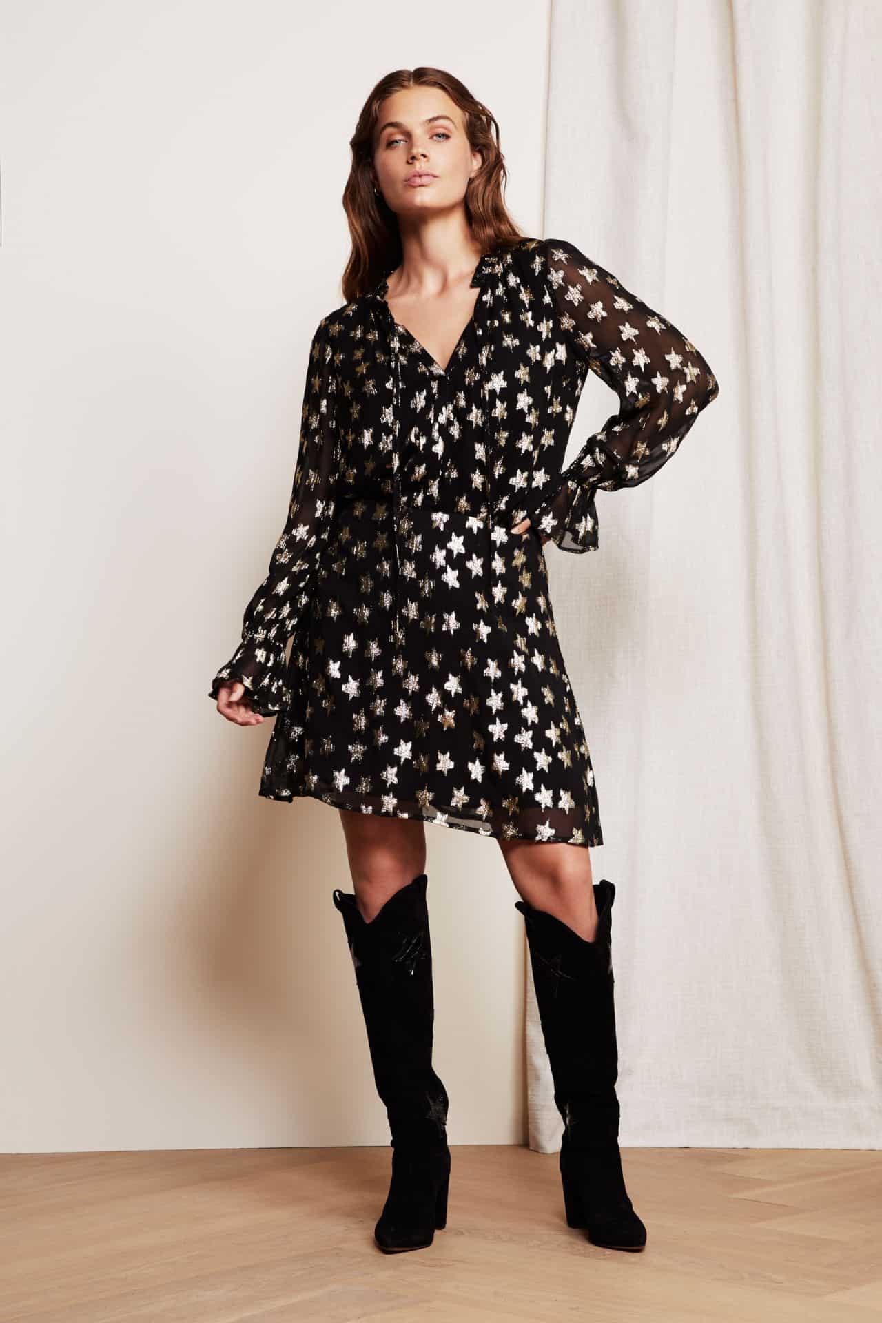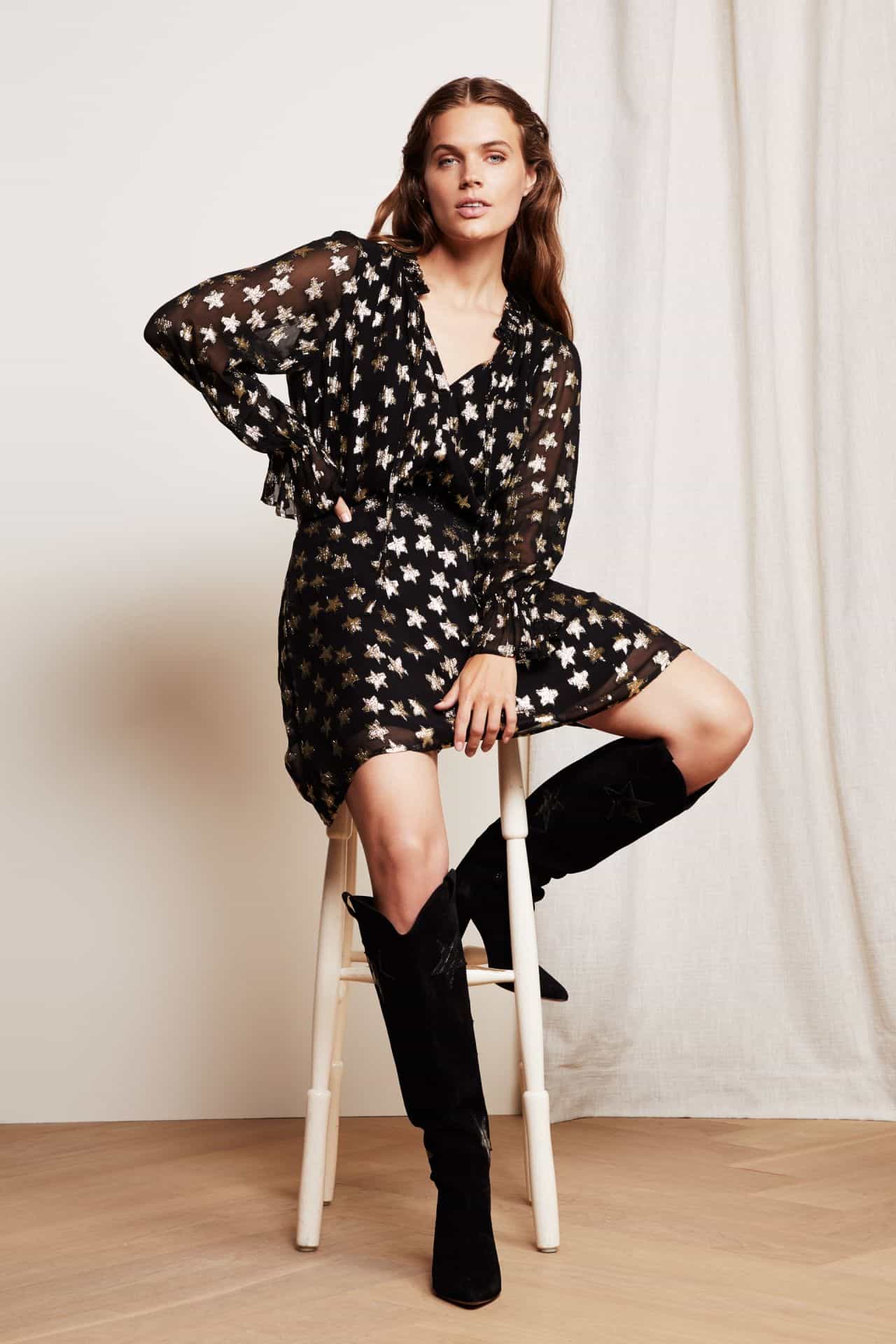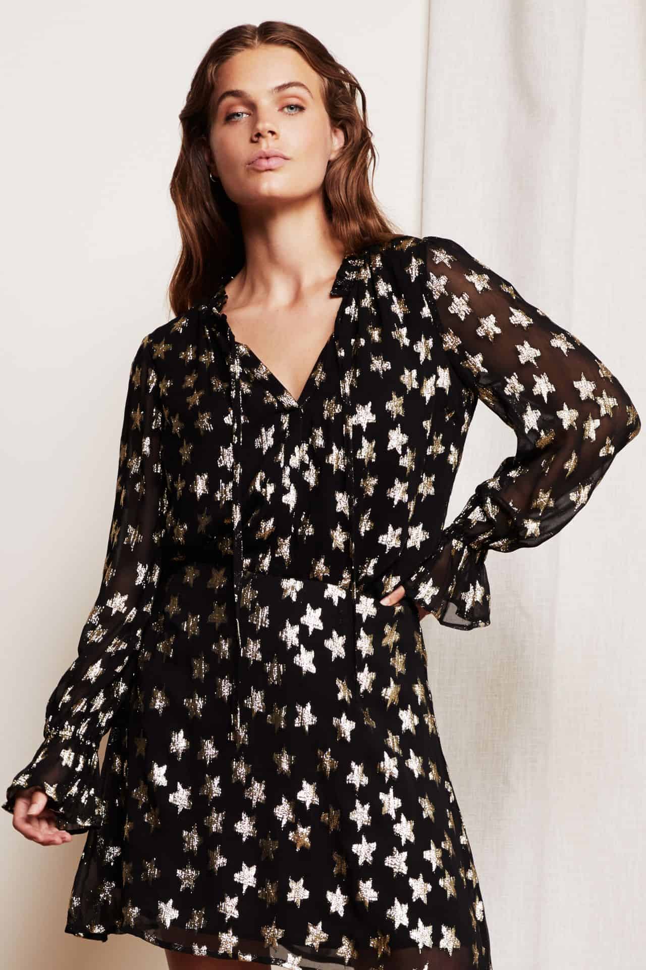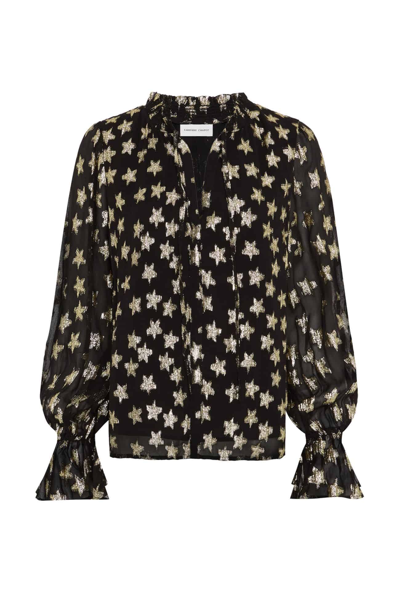 The Maxime top by Fabienne Chapot features golden lurex jacquard details and slightly sheer sleeves for a stunning and flattering style. To make maximum impact wear it with the matching Lot short skirt.