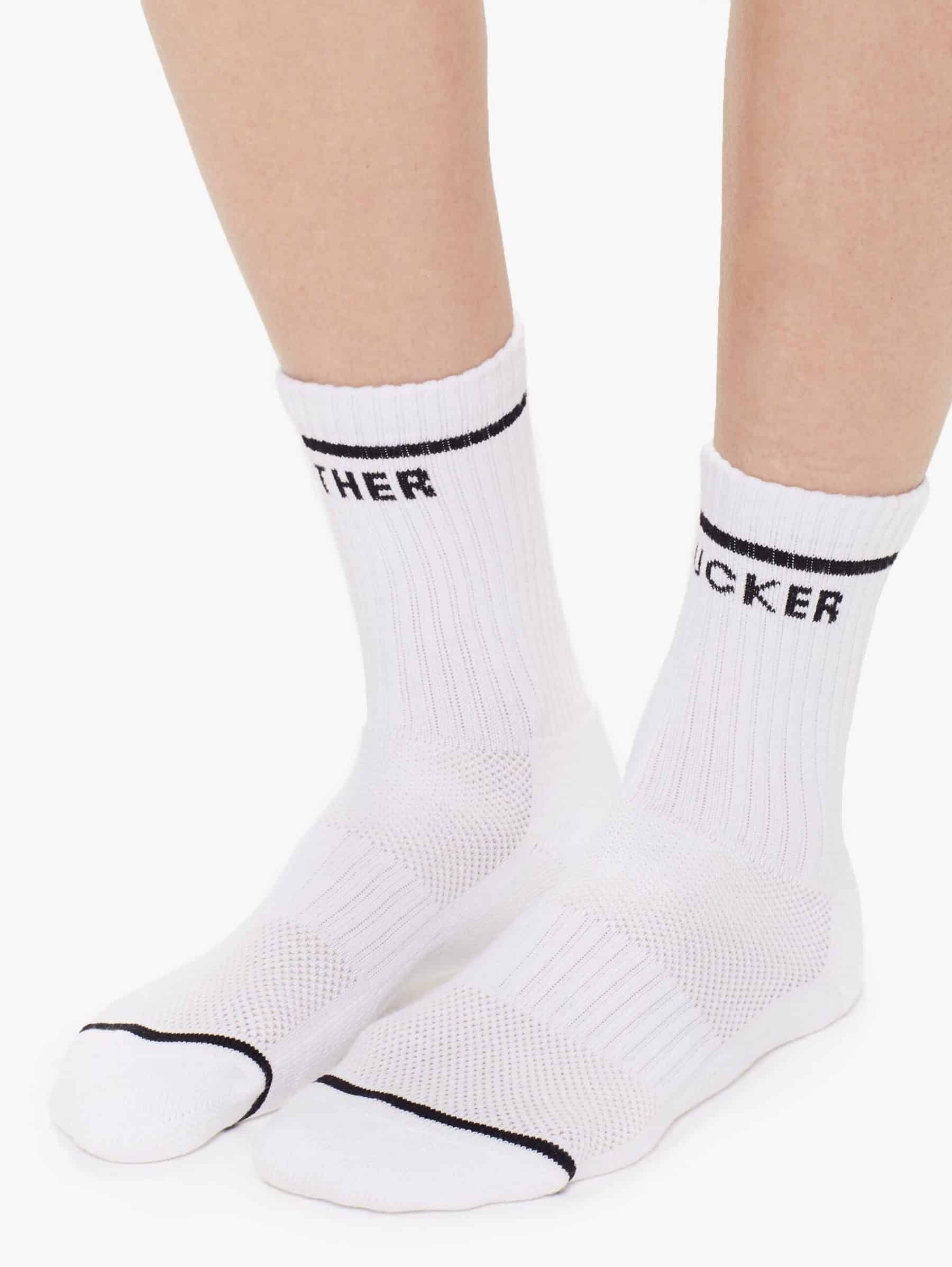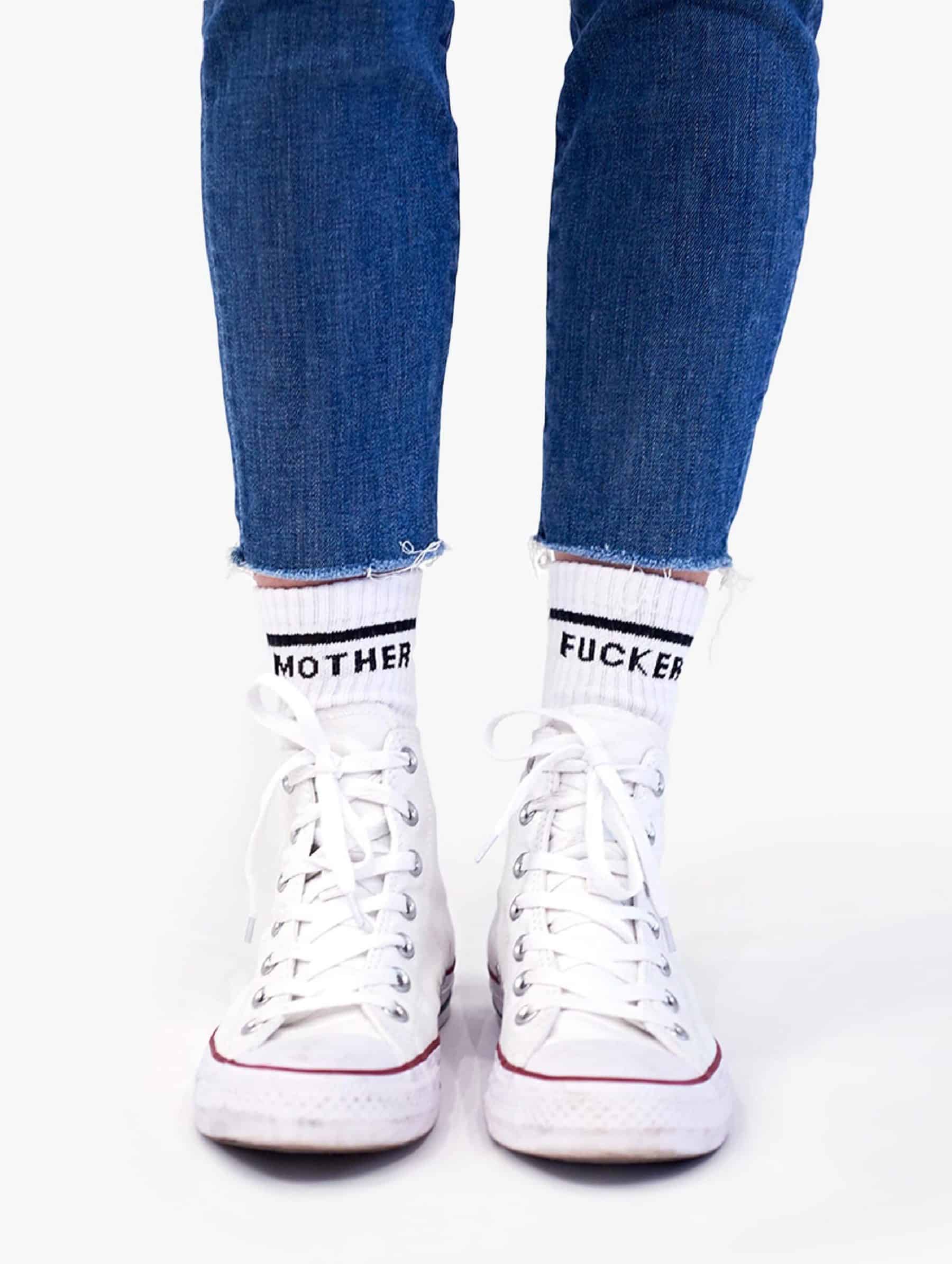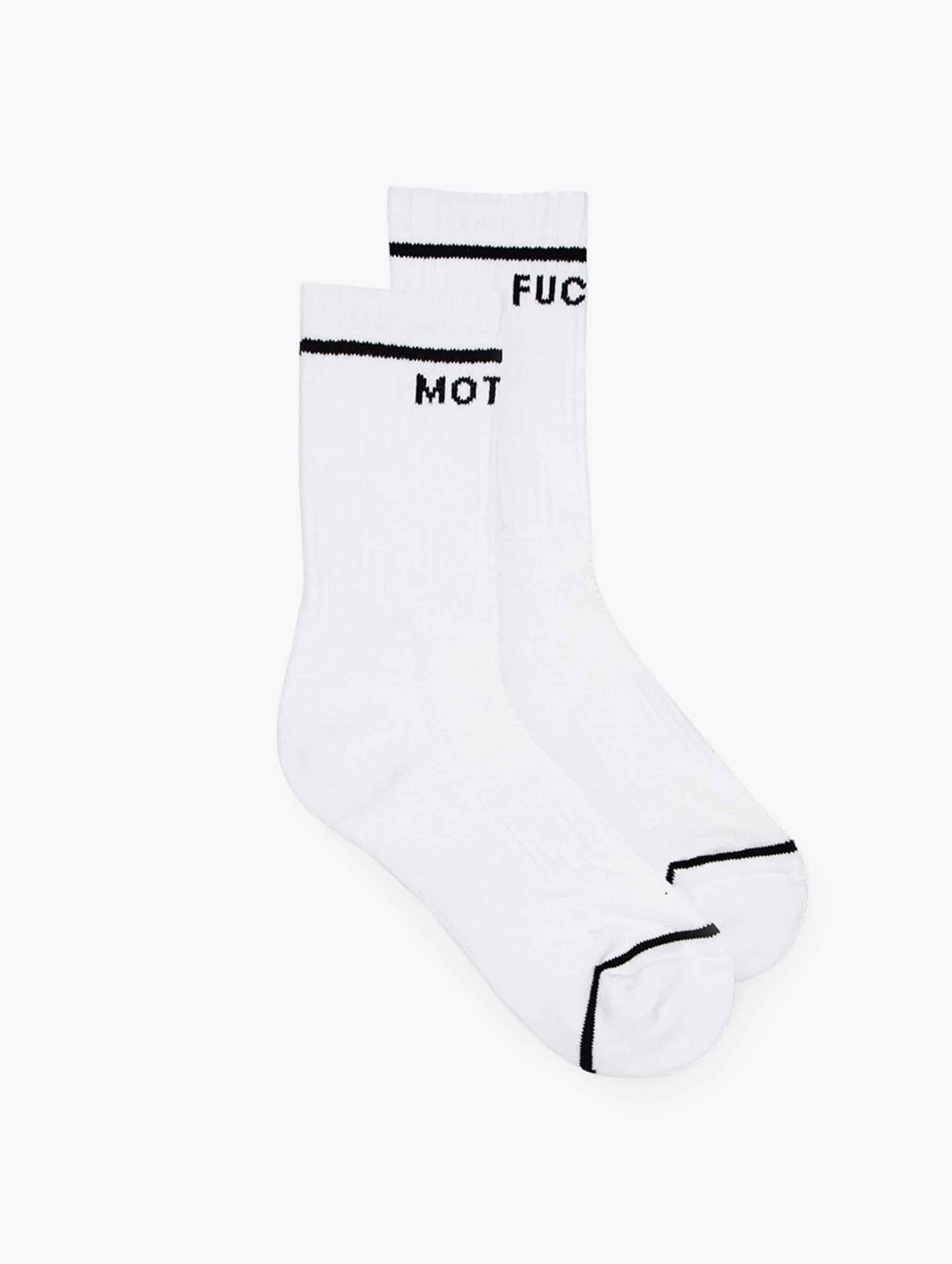 The MOTHER Baby Steps Ankle Socks are for the edgy mum. The MOTHER that will knock your socks off. These knit socks are her best-kept secret with a vintage inspired, tube style and bold lettering and contrast white and black detailing. Perfect for wearing with your favourite jeans and converse. Who says mums have to be boring?