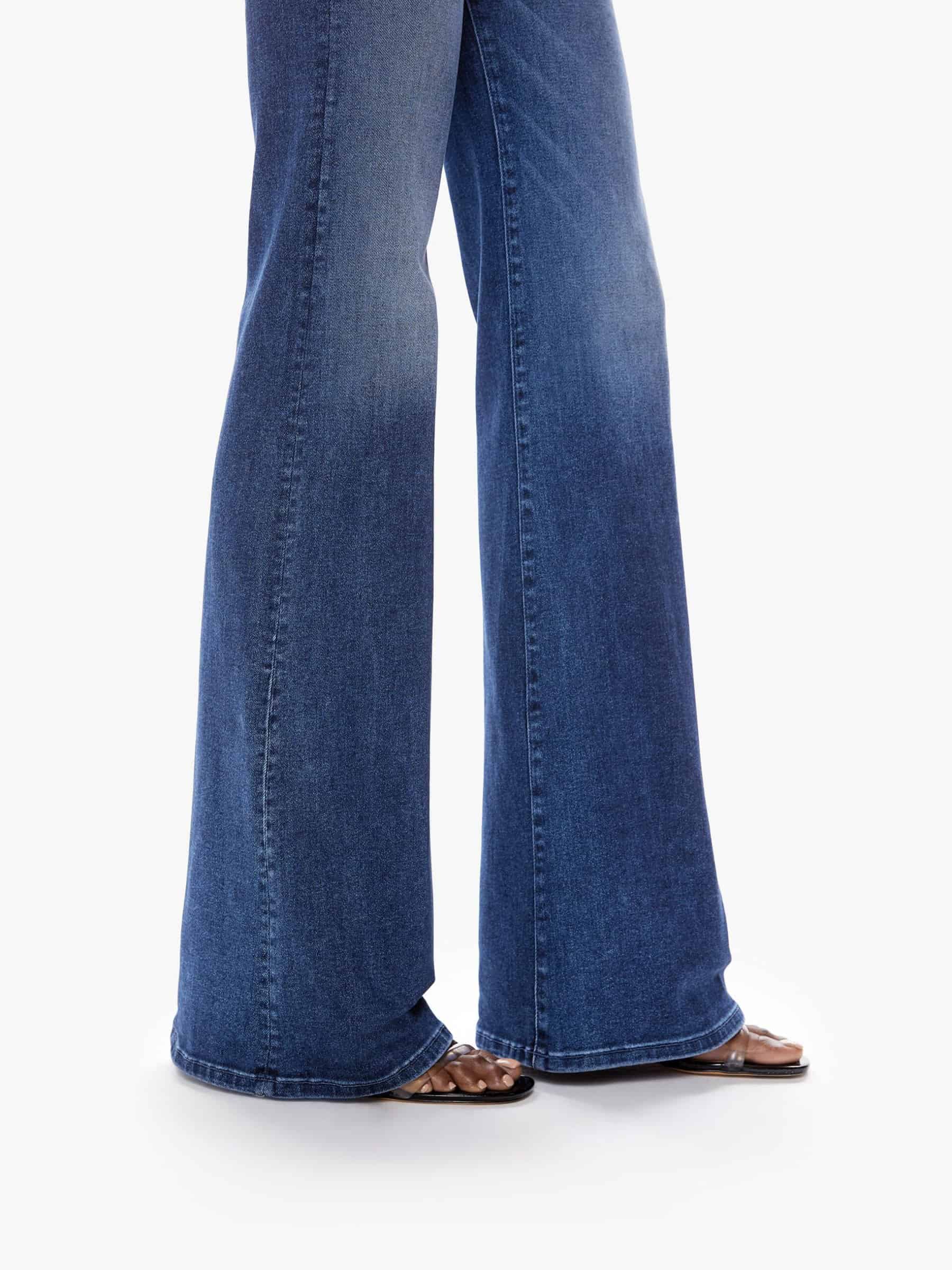 Mother The Hustler Roller Heel need for speed are 70s-inspired wide-leg jeans with a high rise, 35 3/4 inch inseam and clean hem. Cut from stretch denim, they are guaranteed to give you maximum comfort. This pair of jeans are in a dark blue wash with whiskering and fading at the knees. Your new go to jeans.