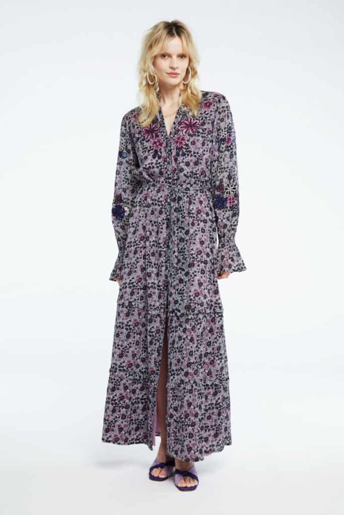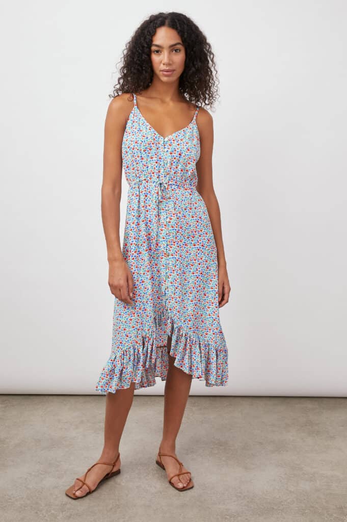 The Natalie Martin Kate Long Sleeve Dress Aegean Andromeda is a long sleeve wrap detail maxi dress in a delicate floral pattern, cut from luxuriously soft 100 silk. With subtle gathers at the shoulder seams and an asymmetrical hem with button closures at the wrist, Natalie Martin's Kate dress is perfect for an easy, put together look.