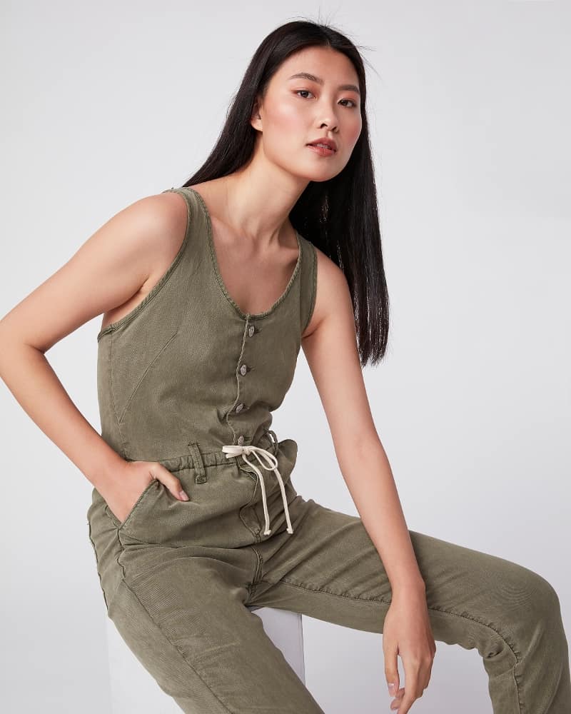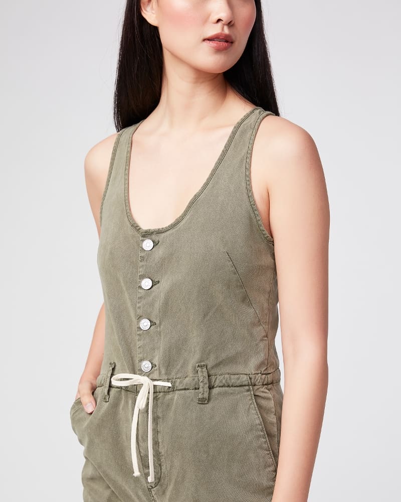 The Paige Christy Utility Jumpsuit in Vintage Ivy Green is inspired by the brand's best selling Christy Pant. This new sleeveless jumpsuit is seriously cool and is the perfect addition to any wardrobe as its slightly relaxed fit and tapered legs makes it an effortlessly stylish option for your summer day styling.