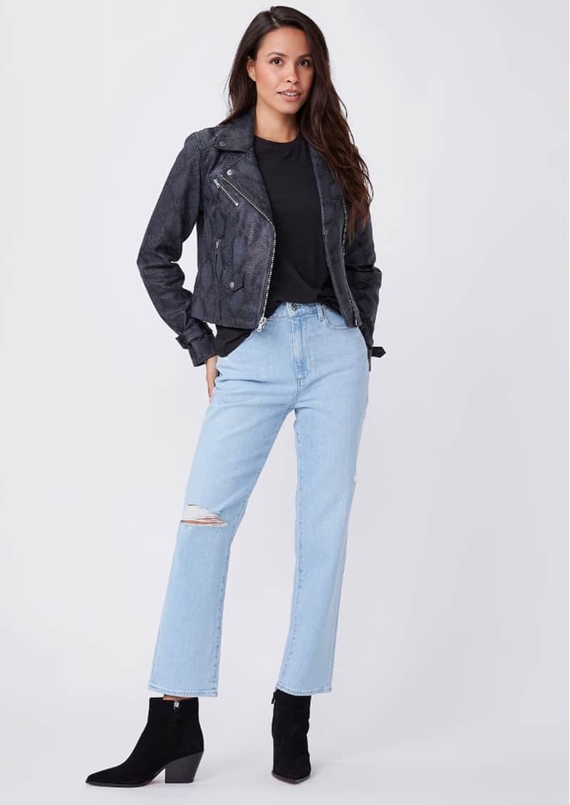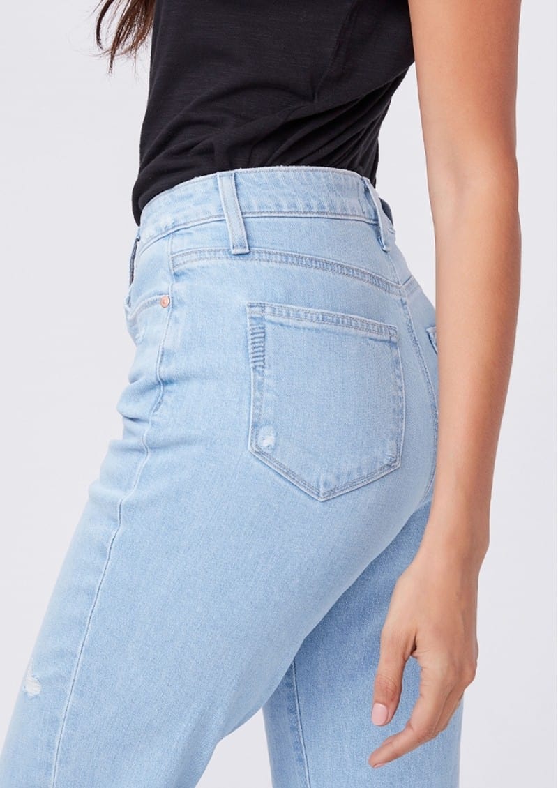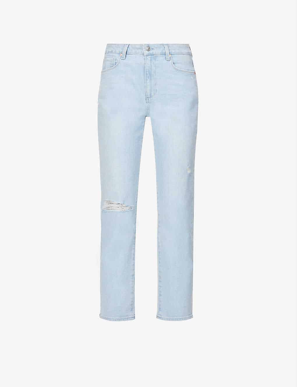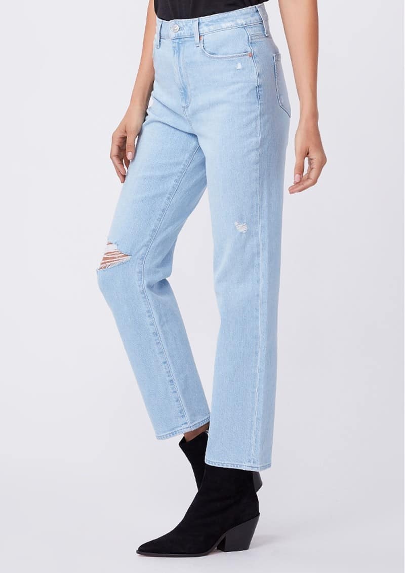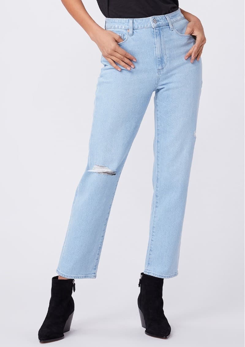 The Paige Noella jeans in broadway destructed are a high rise straight leg jean designed using the brands signature transcend vintage denim which gives them a old jean look but with the comfort of modern denim. The ripped knee detail and faded denim wash is great for creating a relaxed but stylish casual outfit, just team with your favourite Hayley Menzies Safari t-shirt or the Lily & Lionel Etta top for a perfectly put together look.