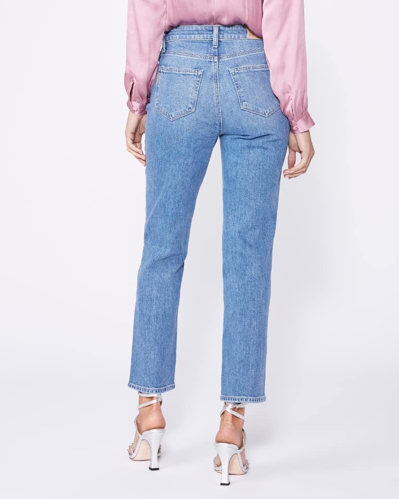 The Paige Noella jeans in darcene distressed are a slightly slouchy high rise relaxed straight leg jean designed using the brands signature vintage denim which gives them a old jean look but with the comfort of modern denim. The clean hem and mid blue colour looks great when worn with heels and Rails blouse for a relaxed, evening style.