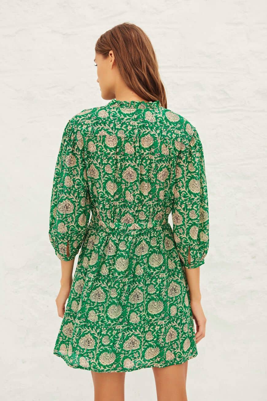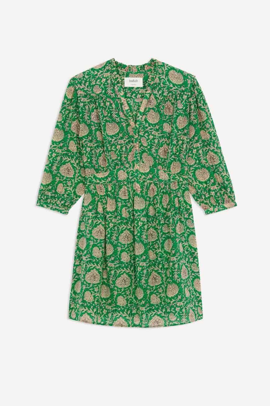 The BA&SH Paz print short dress in vert is the perfect dress for summer with its v neck, 3/4 sleeves and floaty fabric. Team this ethnic inspired printed dress with ankle boots, sandals or trainers for an effortlessly stylish look.