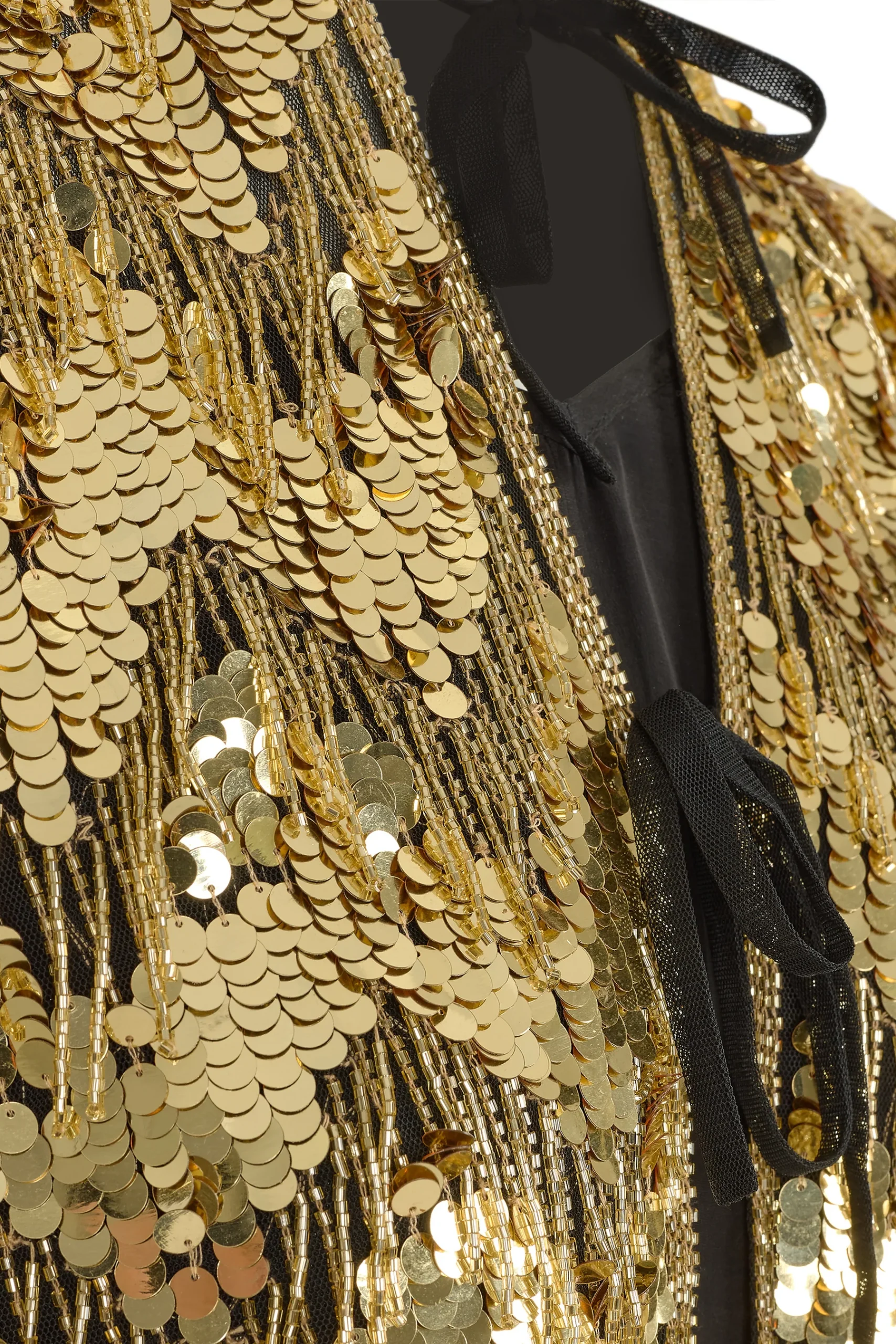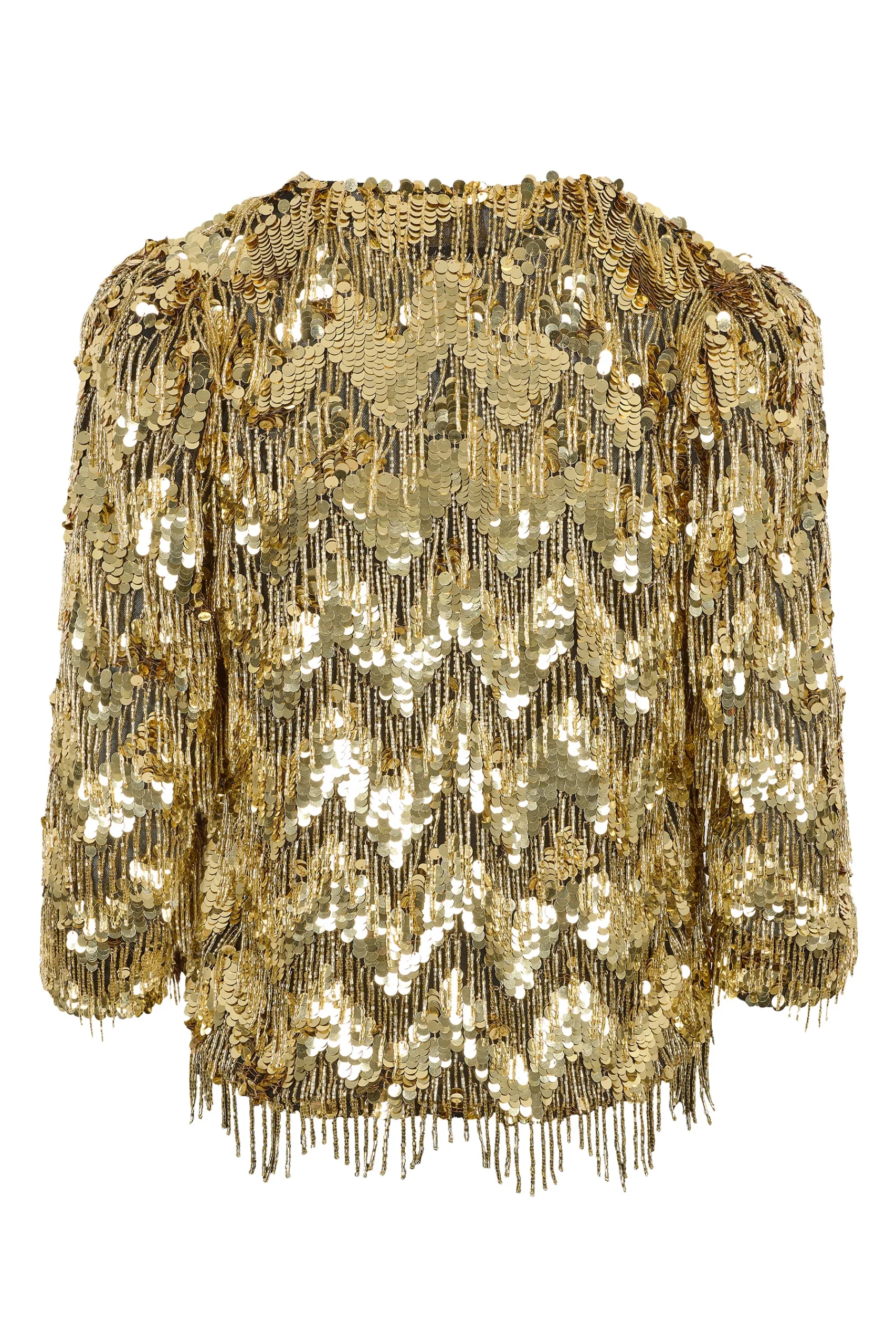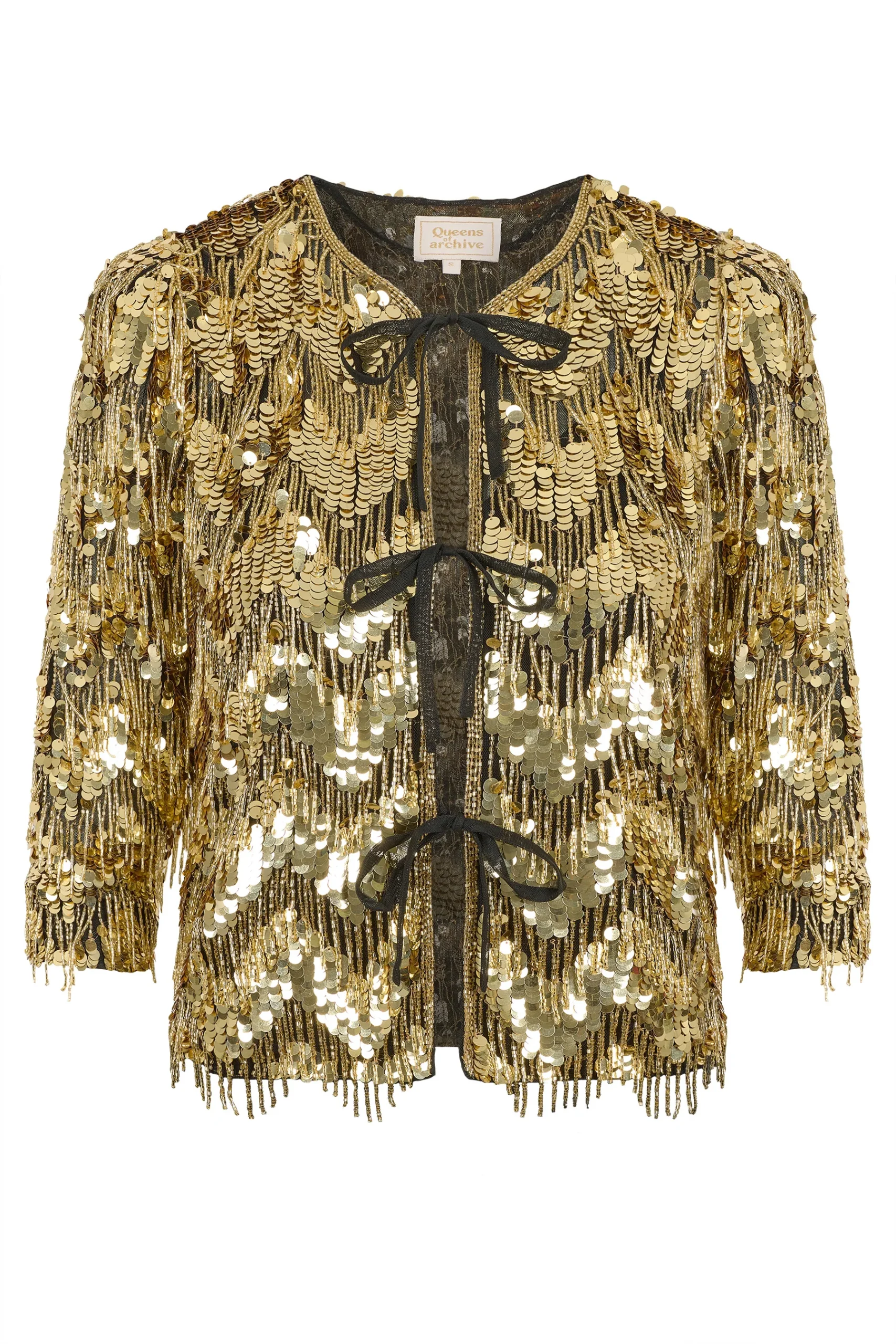 The Queens of Archive Kristal Jacket Gold is the perfect trophy jacket this season. Not a curtain reveal for what’s underneath, Kristal is the main event. She shines in stunning hand embellished gold sequins and beaded fringing topped off with decorative tie bows & raised shoulders. Kristal comes with her own slip cami.