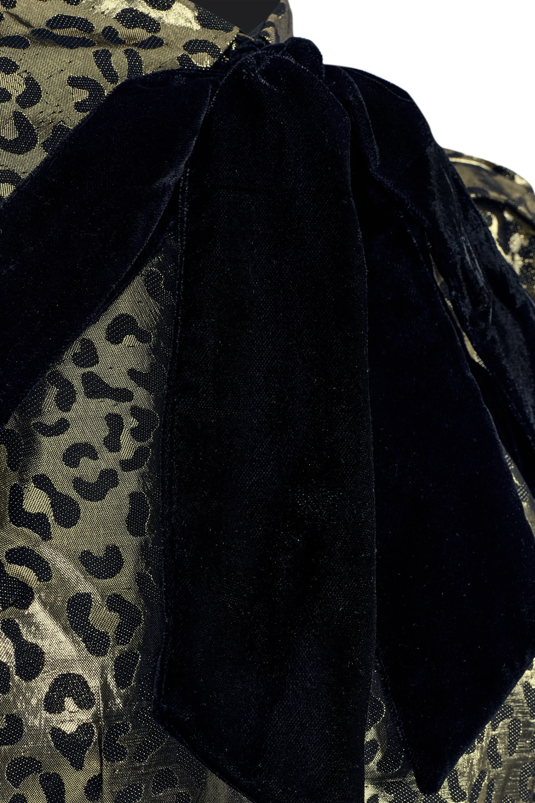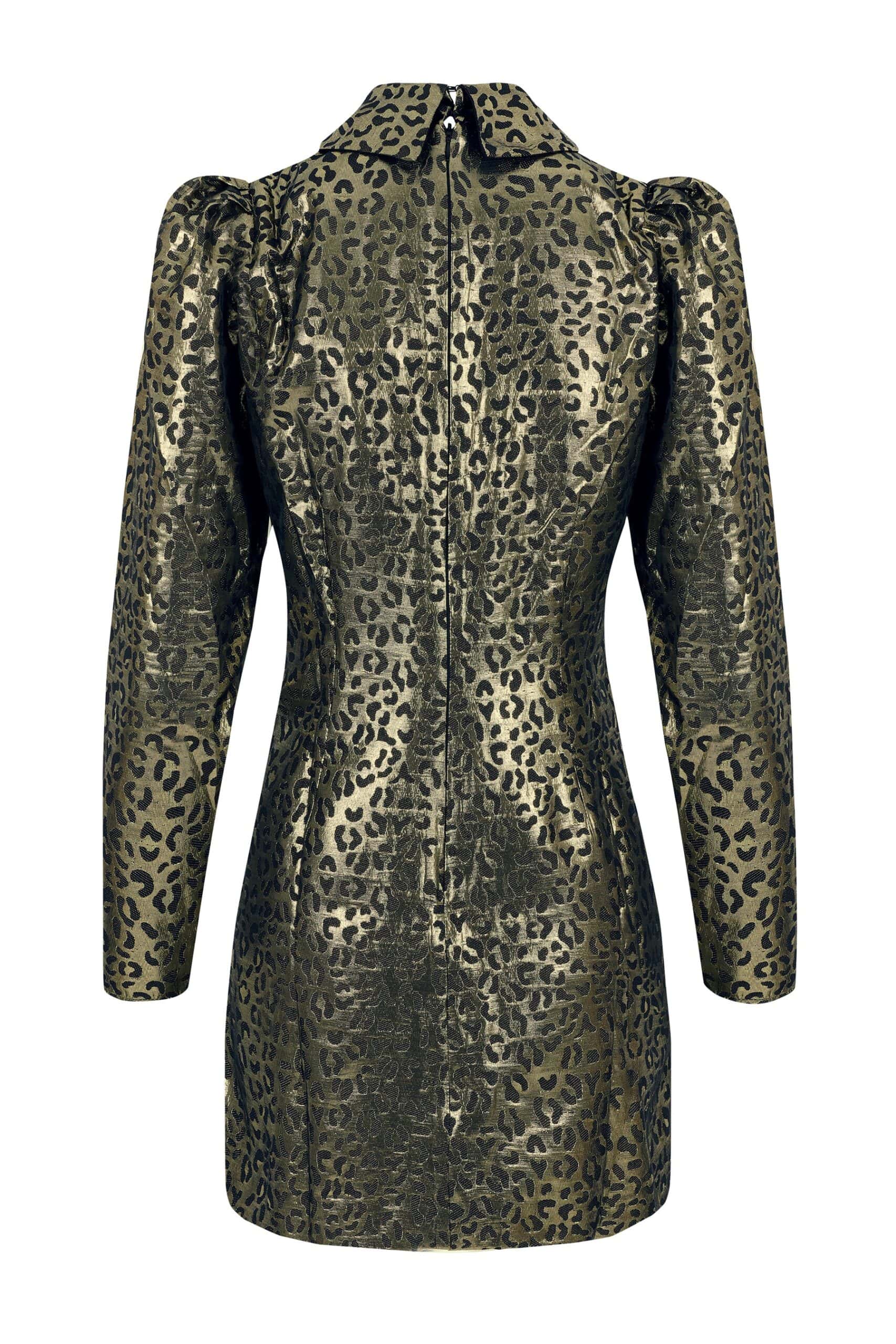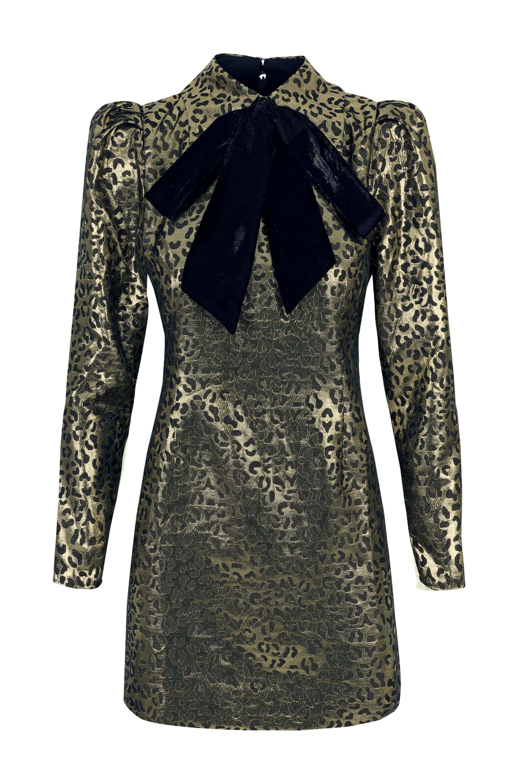 The Queens of Archive Viva Mini Dress Gold is bold & rich, Viva brings a vintage feel to our mini miracles. Viva comes in our new bespoke black and gold leopard brocade giving her a cool muted shine. Featuring a dagger collar, A-line shape & dandy velvet tie gives a full nod to a 60s influence.