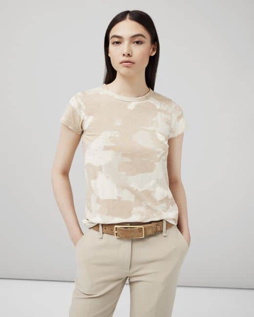 The Rag & Bone All Over Paintbrush Camo Tee Sand is slim-fit tee crafted from 100% organic cotton with a new custom-painted camo print. Featuring a crewe neckline, short sleeves and a regular length. Pairs perfectly with Ecru denim.
