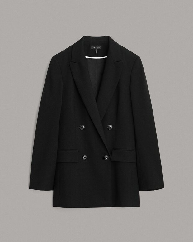 The Rag & Bone Andie Twill Blazer Black is timeless, authentic and iconic. One of the foundational elements of the ideal wardrobe. This tailored wool twill blazer with recycled accents in a classic fit will become a staple in your wardrobe thanks to its slightly elongated fit. Wear with light wash jeans, layer over a white tee or poplin shirt.