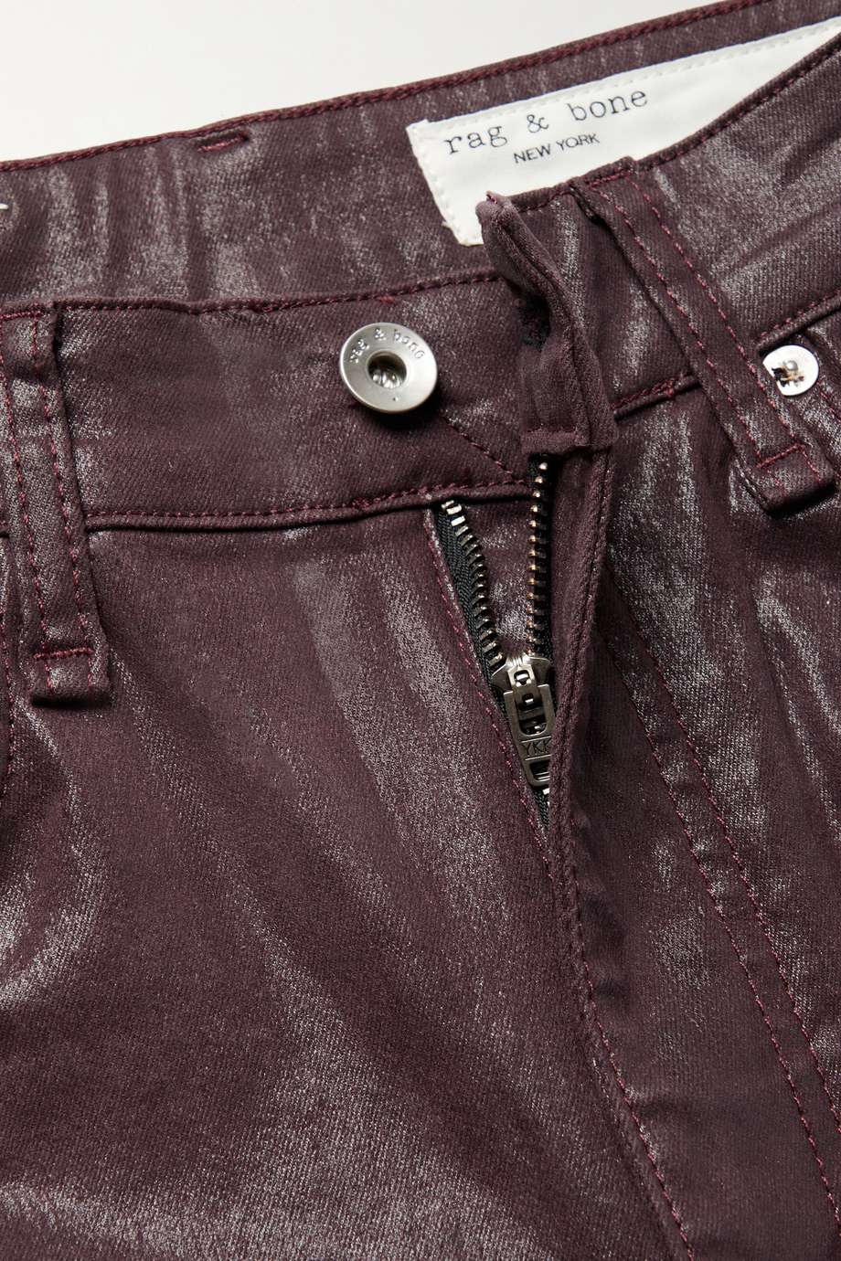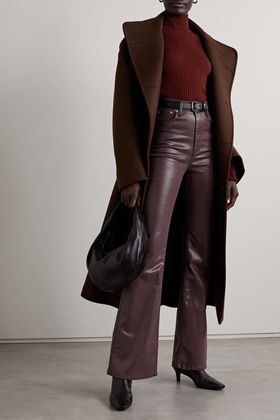 The Rag & Bone Casey High Rise Coated Flare Burgundy are made from coated-denim, lending them a cool, leather-like sheen. They're designed to sit high on the waist and fit slim through the legs before kicking out to flared hems.