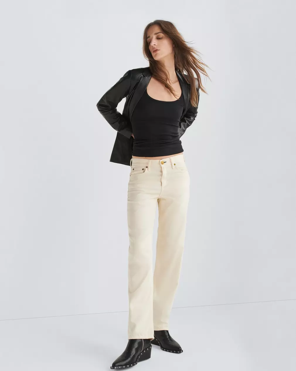 The Rag & Bone Dre Low Rise baggy Boyfriend Jeans Ecru, pulled straight from the archives and evolved for today-it's the perfect boyfriend jean that sits low on the waist, has a loose and relaxed fit and can be cuffed at the ankle (or not, for an even more casual feel). Crafted from Featherweight denim that's made with Tencel, for a jean that's ultra-light and supremely soft. In Ecru, a soft white.