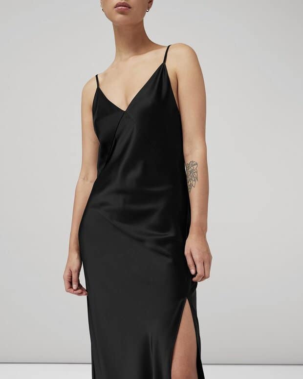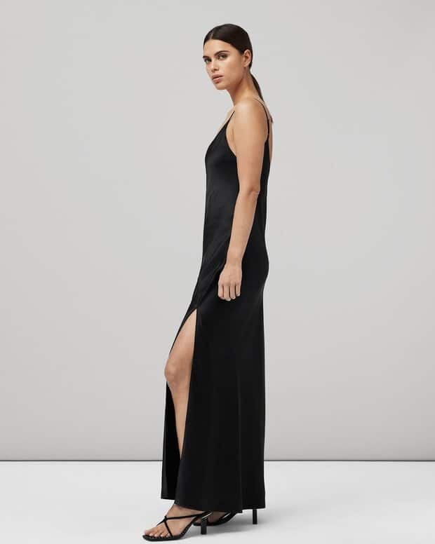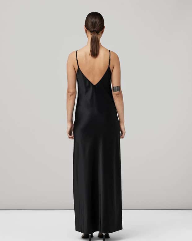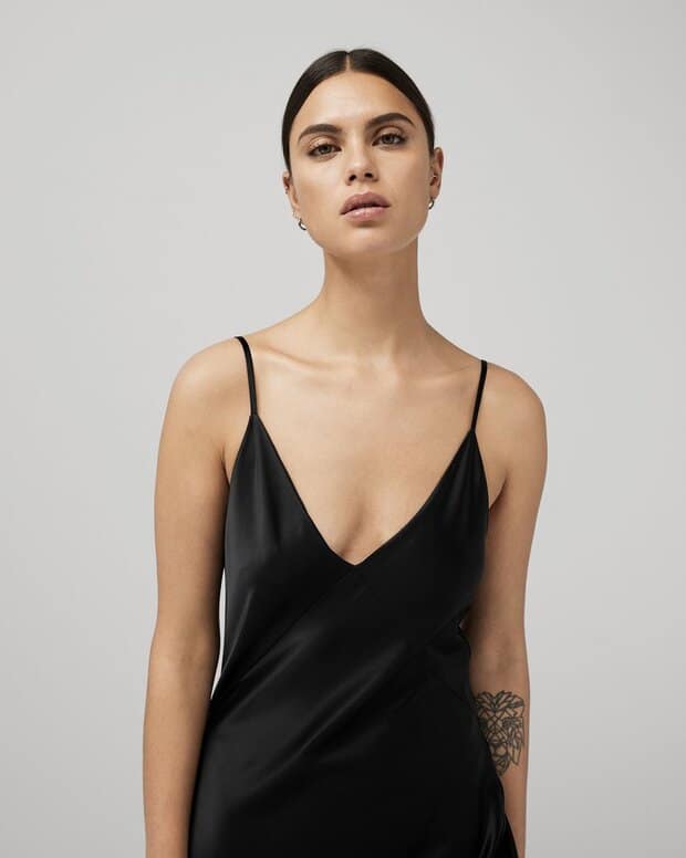 The Rag & Bone Larissa Slip Dress Black comes in heavy draped satin, bias cut to create an impeccable fit. Even without parties on the agenda, the slip dress serves a stylish everyday purpose. Simply layer with cosy knitwear or a sturdy biker jacket.