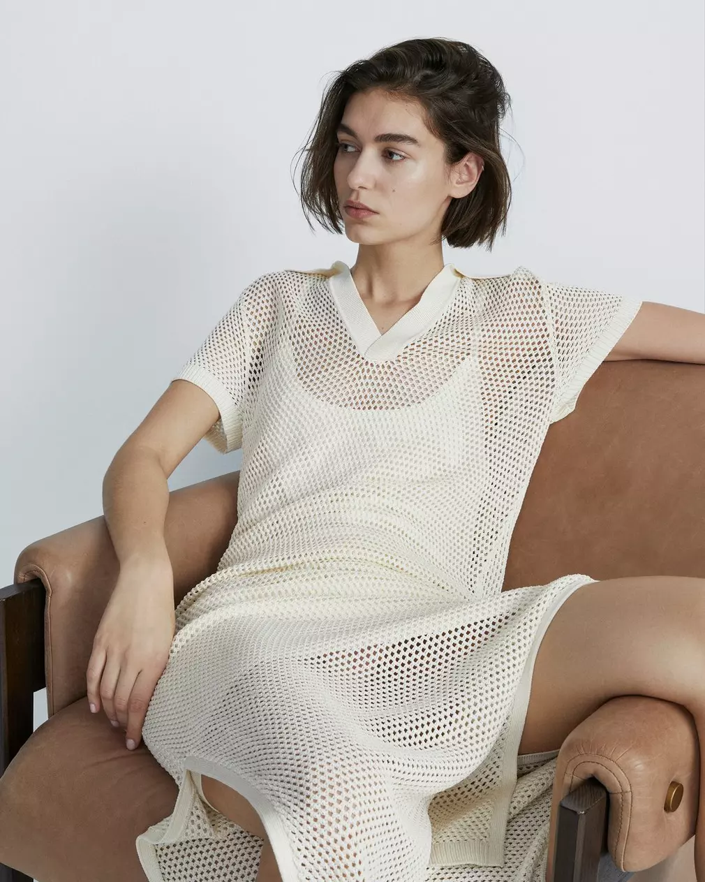 The Rag & Bone Leah polo Maxi Dress Vanilla is a slim-fit, knitted polo maxi dress. Fully lined-for comfort exemplified. Featuring a mesh overlining that shows your feminine silhouette in a modest way. Pair with chunky sandals for the perfect summer daytime look.