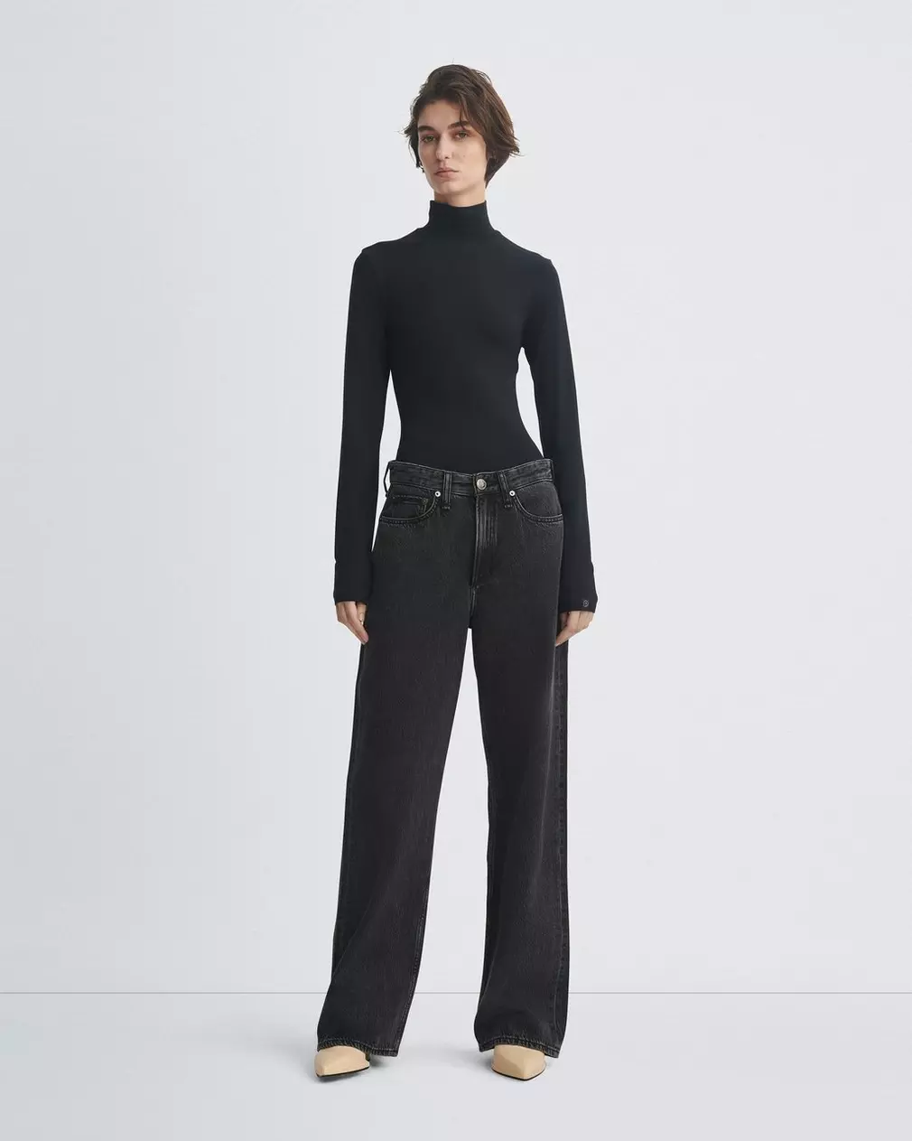 The Rag & Bone Luca T Neck Long Sleeve Top Black is timeless, authentic and iconic. One of the building blocks of a perfect wardrobe. This fitted slim long sleeve top with a high neck is ultra thin and crafted with a hint of slinky stretch that makes this the perfect layering piece. Style with virtually anything in your closet.