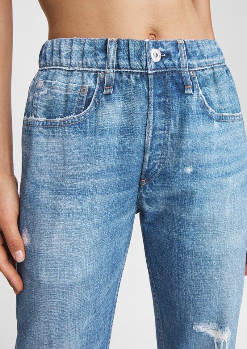 The Rag & Bone Miramar jogger in glass hill is a super comfortable jogger that is printed to look like your favourite pair of high rise jeans. The loose fit joggers feature an elasticated waist and ankles along with side seam pockets with a distressed printed design. These are the perfect addition to any wardrobe and great for the days that you want to stay stylish and comfortable but don't want to wear jeans. Team with your favourite t-shirt, knitwear and trainers for a seriously effortless outfit.
