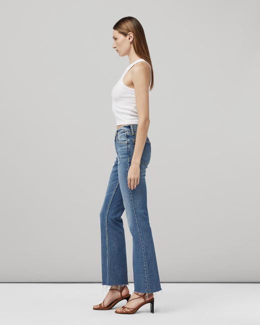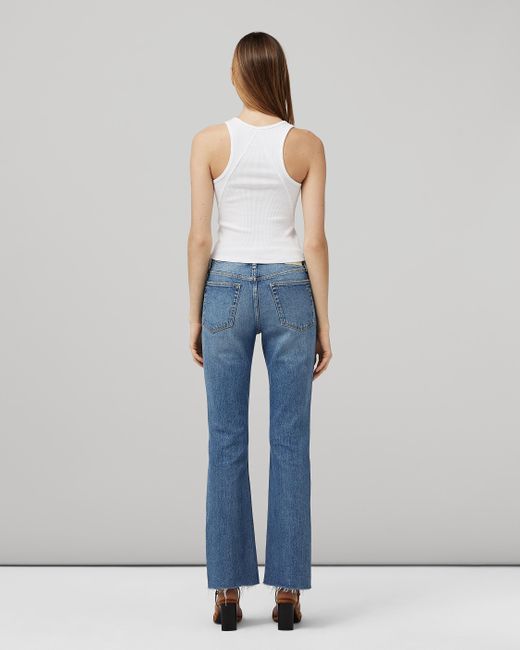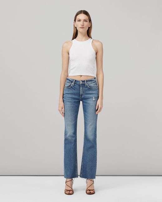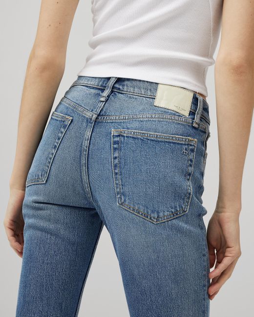 The Rag & Bone Peyton Bootcut Monterosso is your new favorite mid-rise boot cut jean, this silhouette is a wardrobe classic. Crafted in Comfort Stretch, for a style that looks like rigid denim but has a touch of stretch for a comfortable fit. Featured here in Monterosso, a medium indigo wash. Mid-rise boot cut, full length.