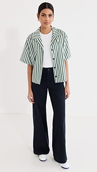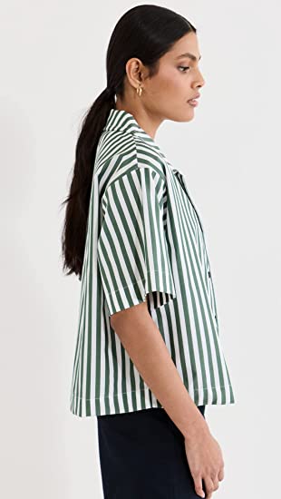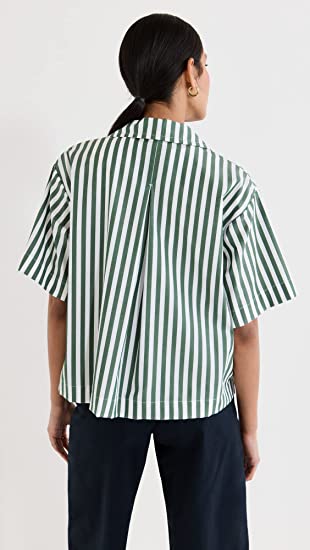 The Rag & Bone Reed Stripe Shirt Green Stripe is a gorgeous cotton poplin shirt. Featuring stripes throughout with an open spread collar, button closure, inverted box pleat at back yoke and a logo-engraved black hardware.