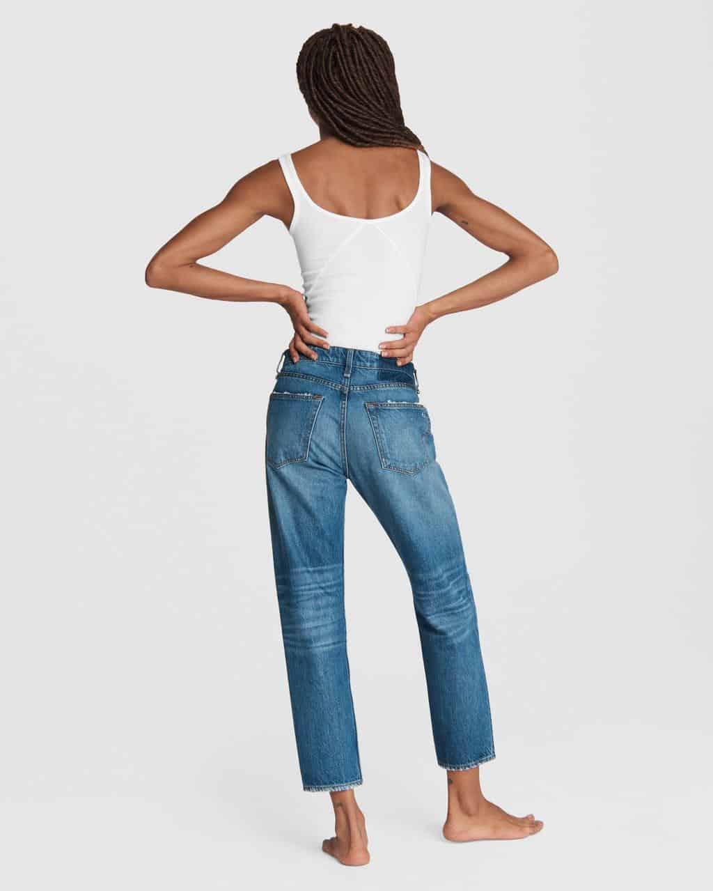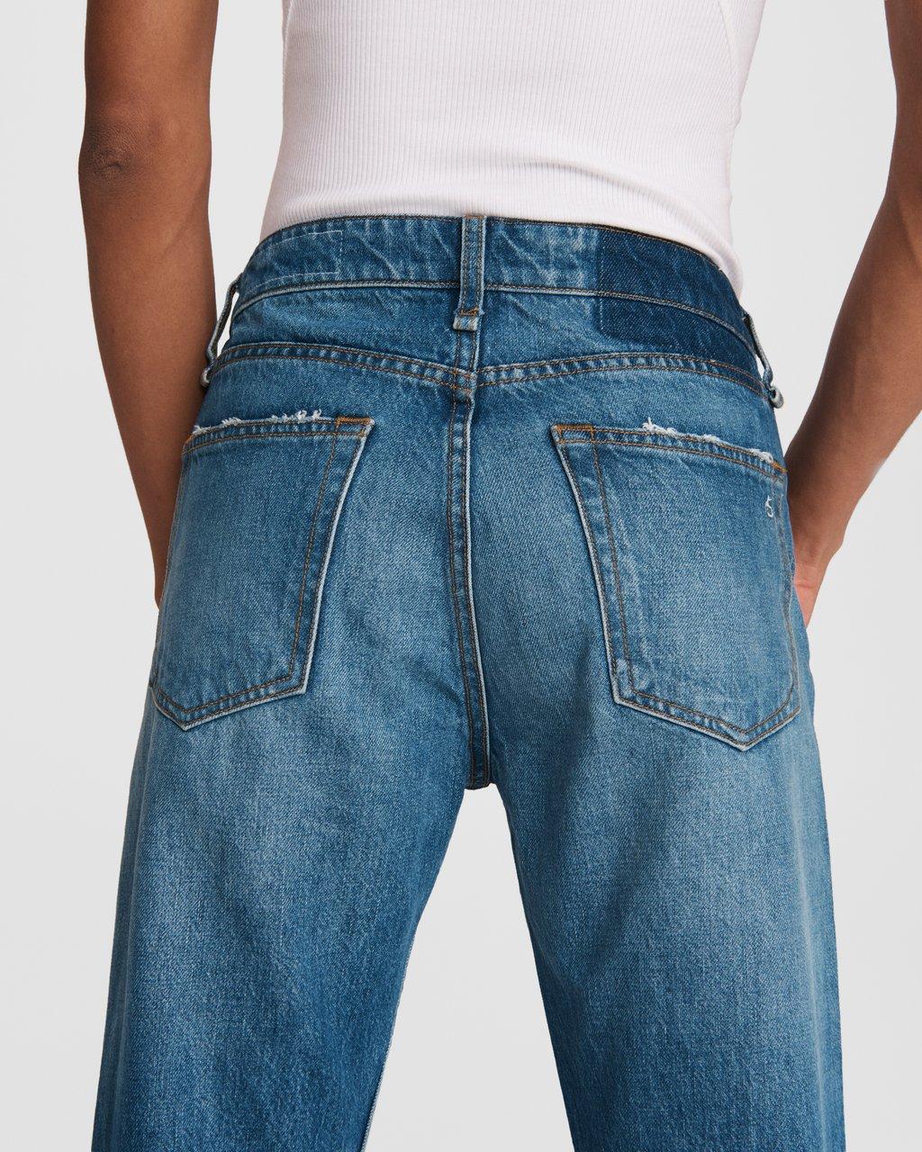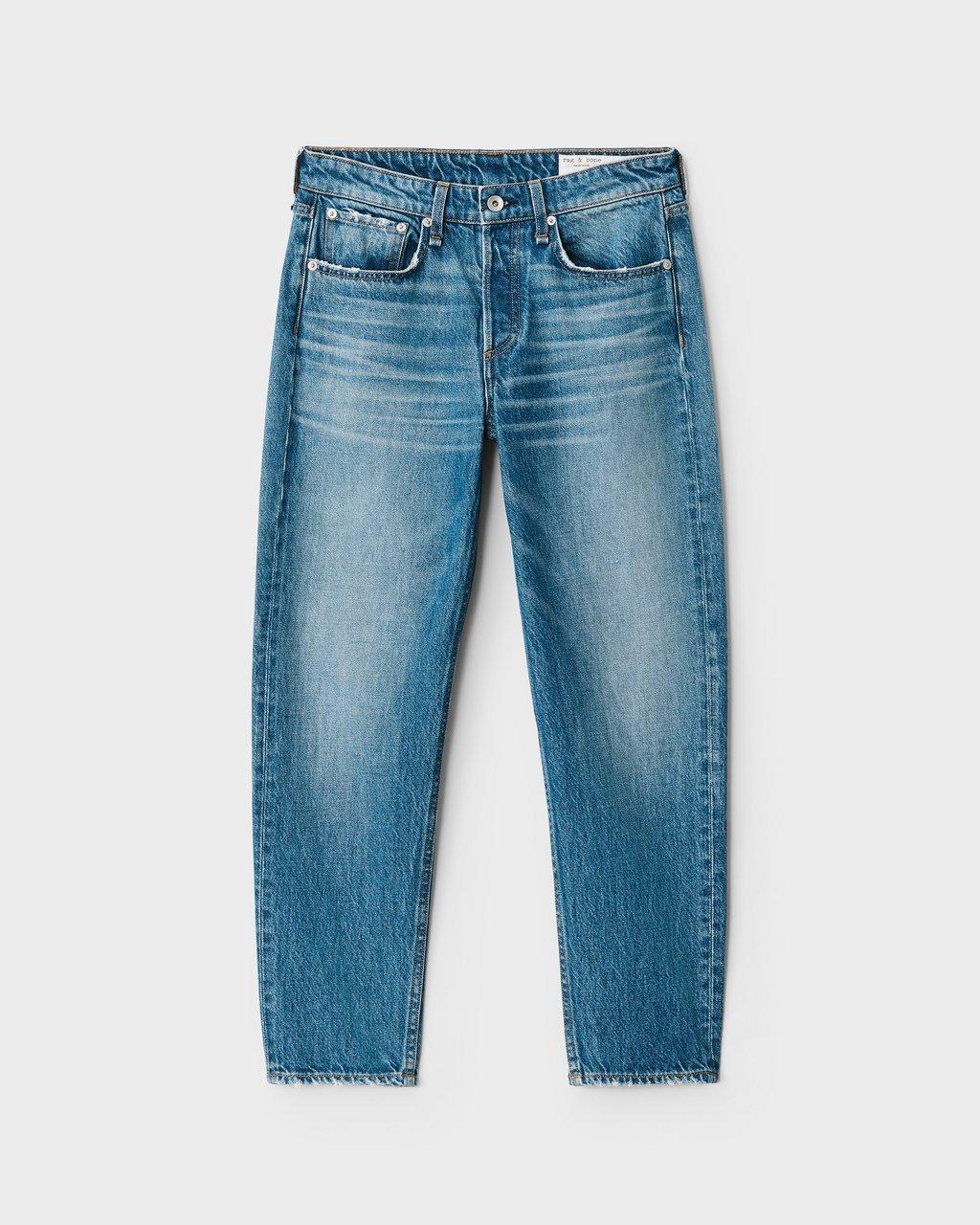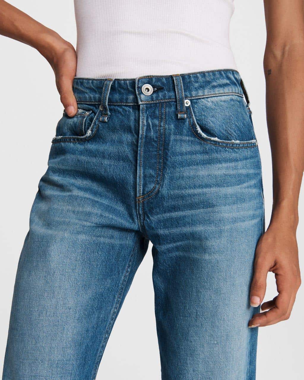 The Rag & Bone Rosa mid rise boyfriend jeans in clean mick is an updated version of the brands best selling boyfriend Rosa jeans. Updated in a leg-lengthening cut with a slightly exaggerated taper and a gentle rise they still look and feel like the perfect vintage pair of denim. In a medium blue wash with clean hems and a button fly these are the perfect jeans for any occasion, just team them with your favourite tee.