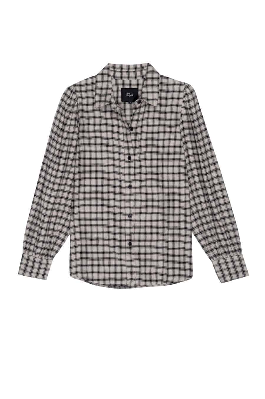 The Rails Angelica Shirt Malt Onyx is a dramatic, romantic spin on the traditional plaid shirt. This soft long sleeve shirt has a loose shape, puff sleeves, shirring at the cuffs, and horn buttons. It is made from lightweight antique flannel.
