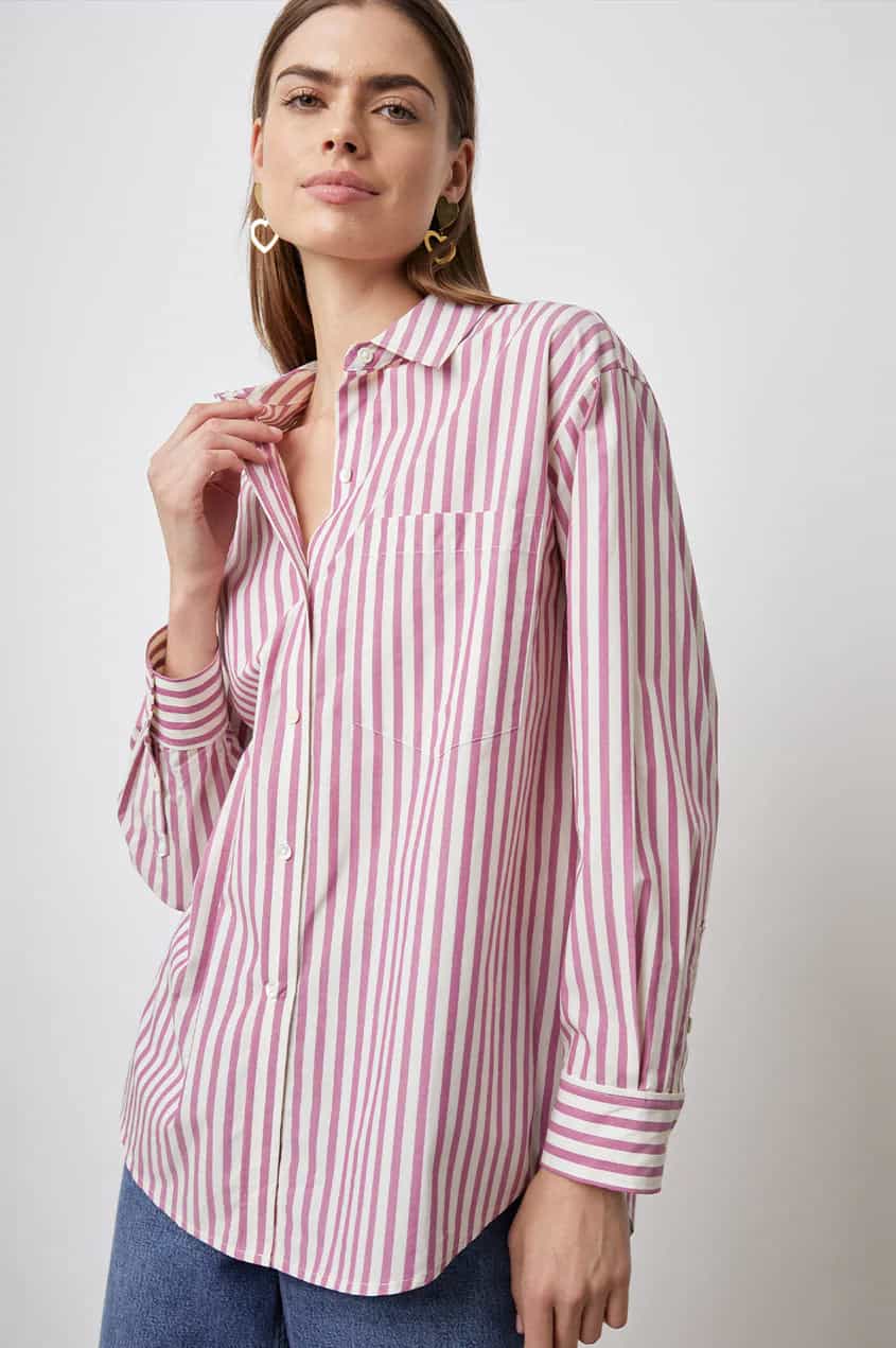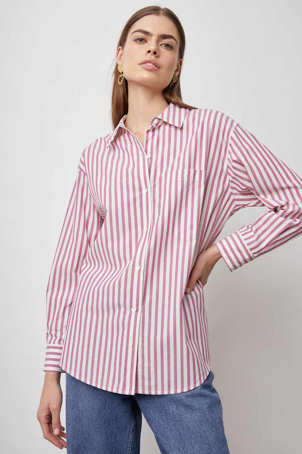 The Rails Arlo Shirt Cali Stripe is a staple classic style for your wardrobe. Featuring contrast panels that create a complex palette of stripes for this button-up shirt, crafted from a sustainable blend of organic cotton and Tencel® lyocell. Wear buttoned up with flared jeans or unbuttoned over a tank for a more casual vibe.