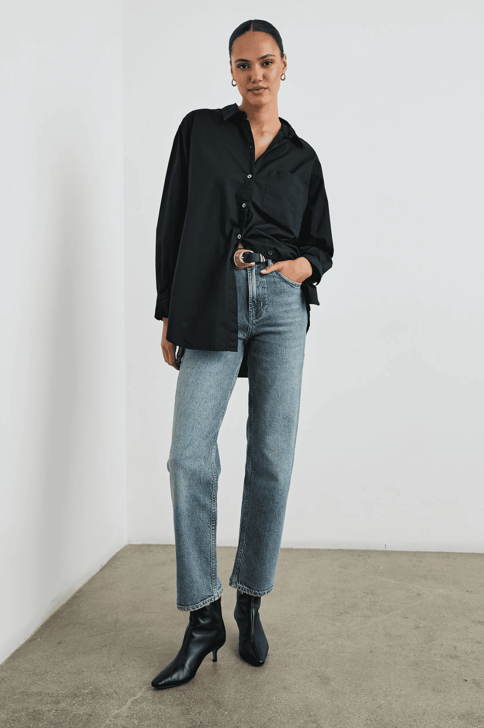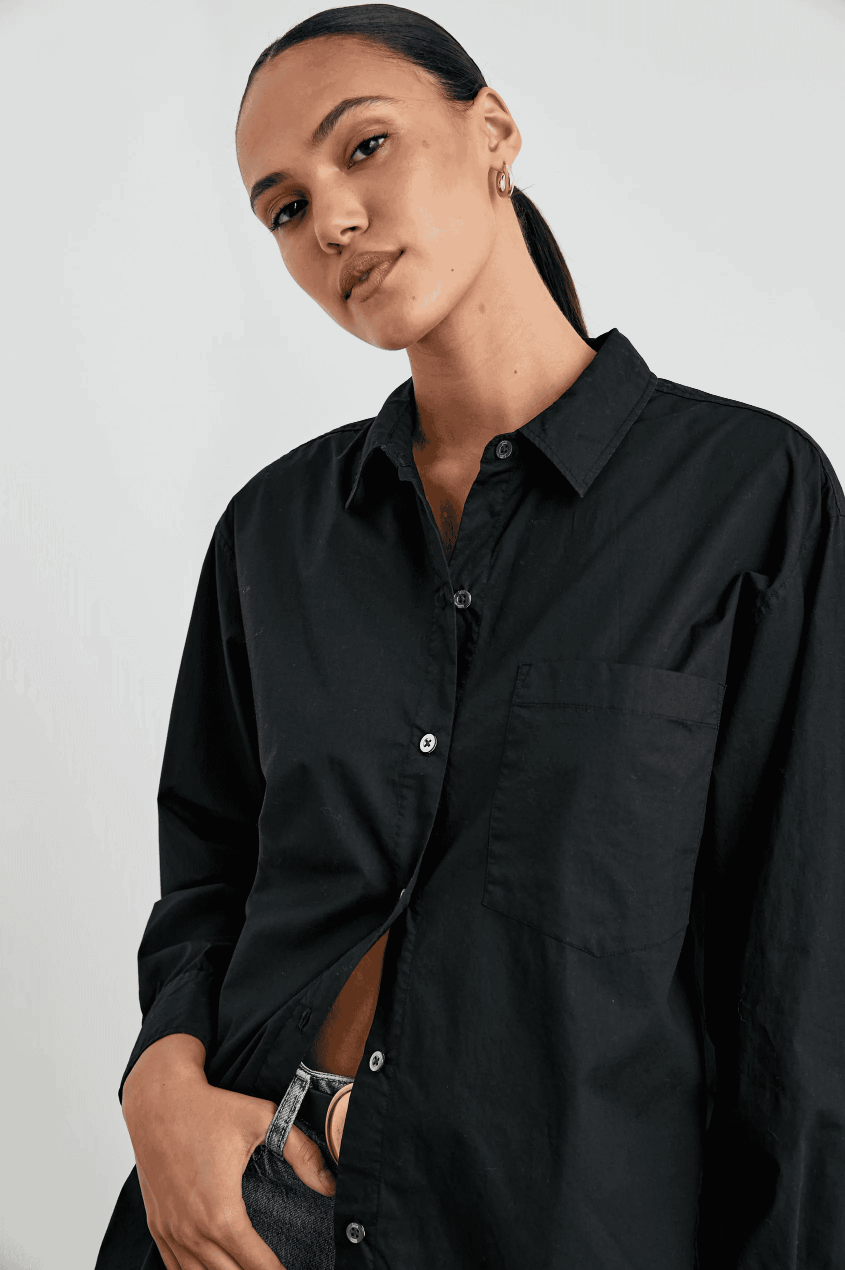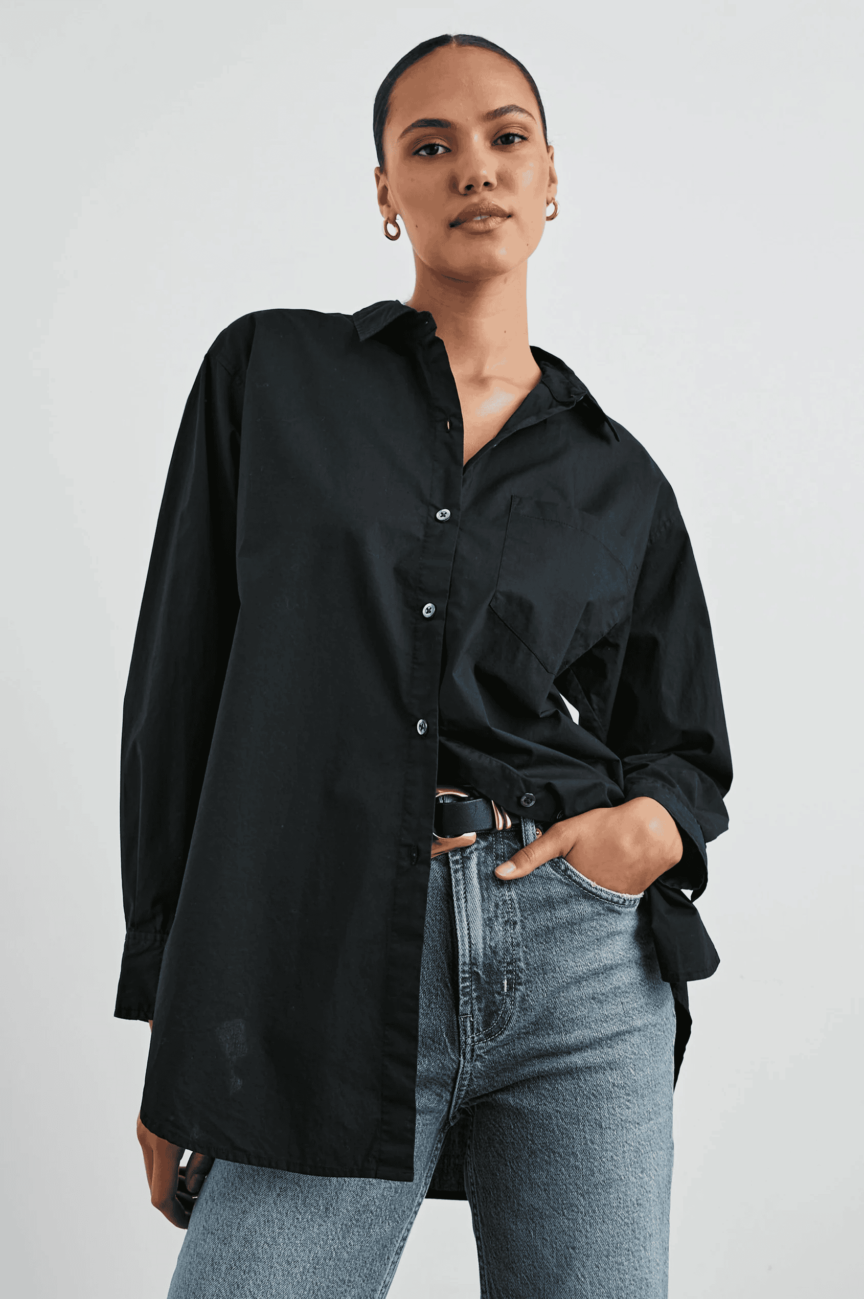 The Rails Elsa shirt in black is a simple yet stylish cotton shirt that is perfect for styling with your favourite denim. With long sleeves, button front fastening and a collar this is a quick staple piece to elevate your day to day outfits.