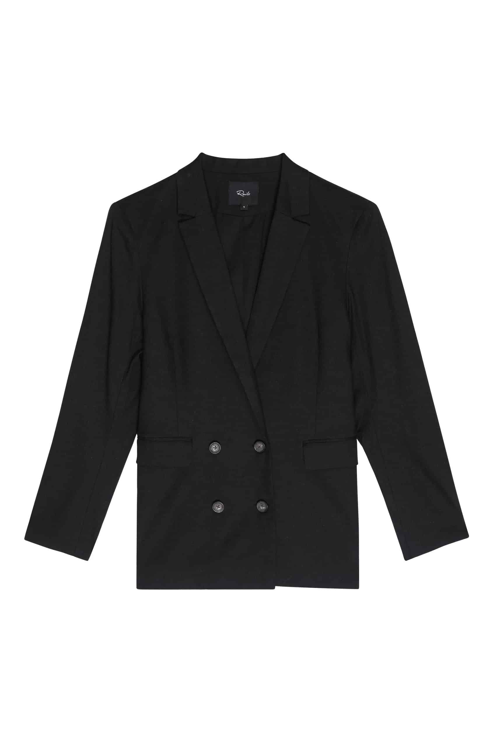 The Rails Jac Blazer black twill is a menswear-inspired blazer, which has been expertly tailored, will elevate your sense of style. This double-breasted blazer jacket is made of heavyweight linen and has black buttons, notched lapels, and useful flap pockets. Style with the coordinating Rails Marine trousers for a stylish work wear or casual alternative to denim.