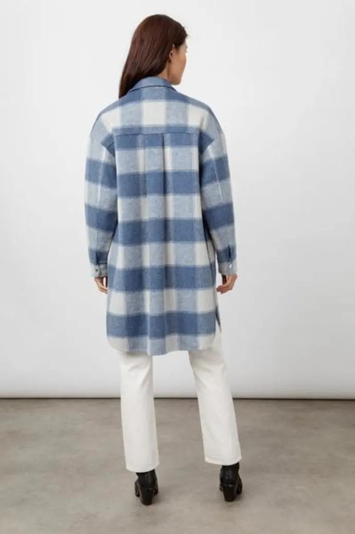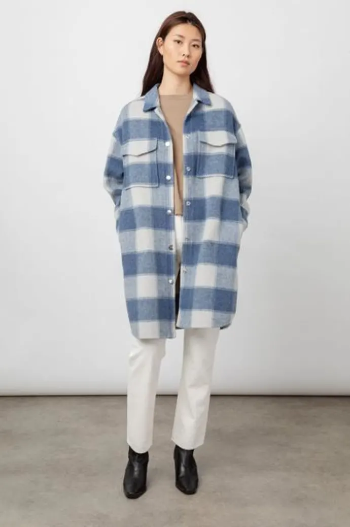 The Rails Jaro jacket in blue buffalo is a slightly oversized, super cosy and stylish coat perfect for layering. The wool blend coat is unlined, has long sleeves and features a cobalt blue and soft white plaid design.