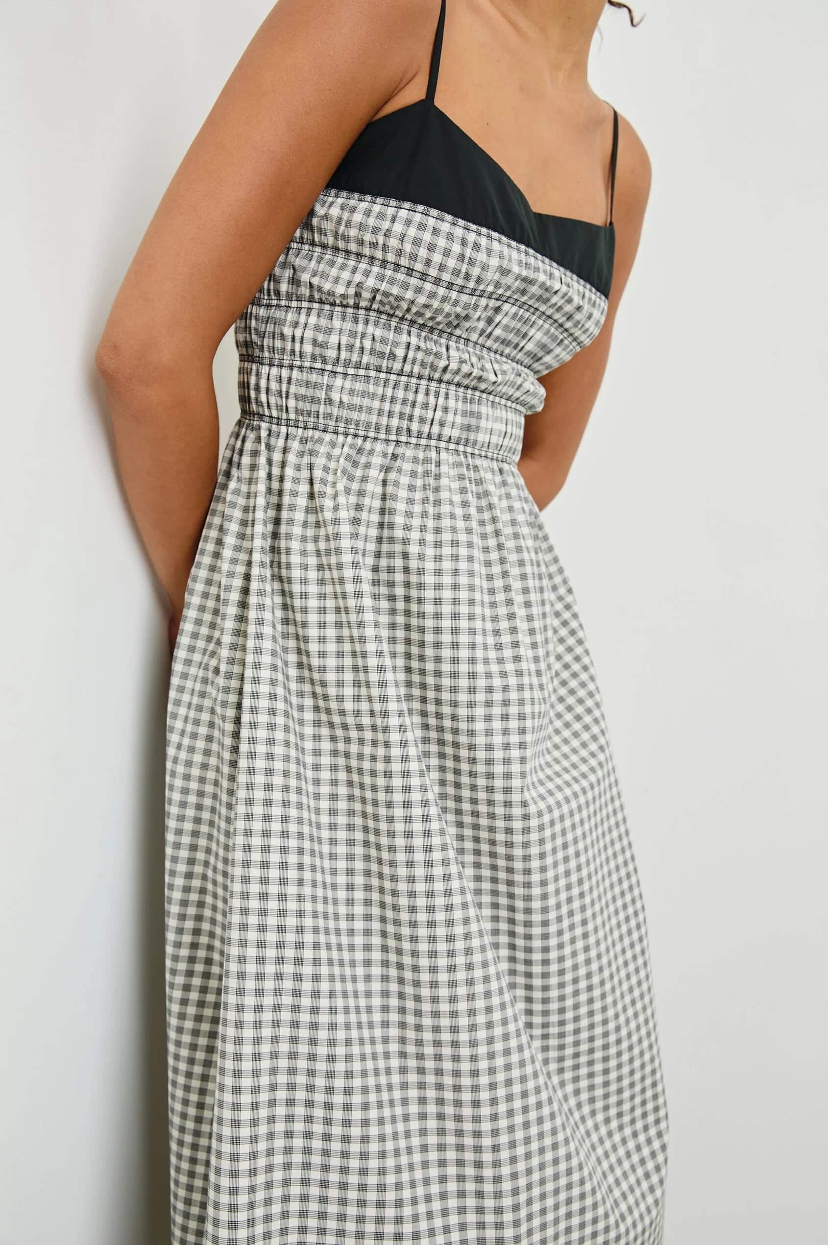 The Rails Primrose dress in ivory jet gingham is a beautiful summer dress that is inspired by French screen sirens. Featuring a shirred bodice, all over gingham design and heavy cotton poplin, this lightweight dress is perfect for summer or for on holiday, with the heavy poplin cotton.