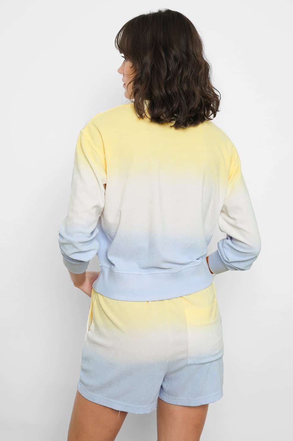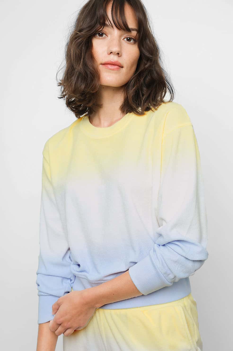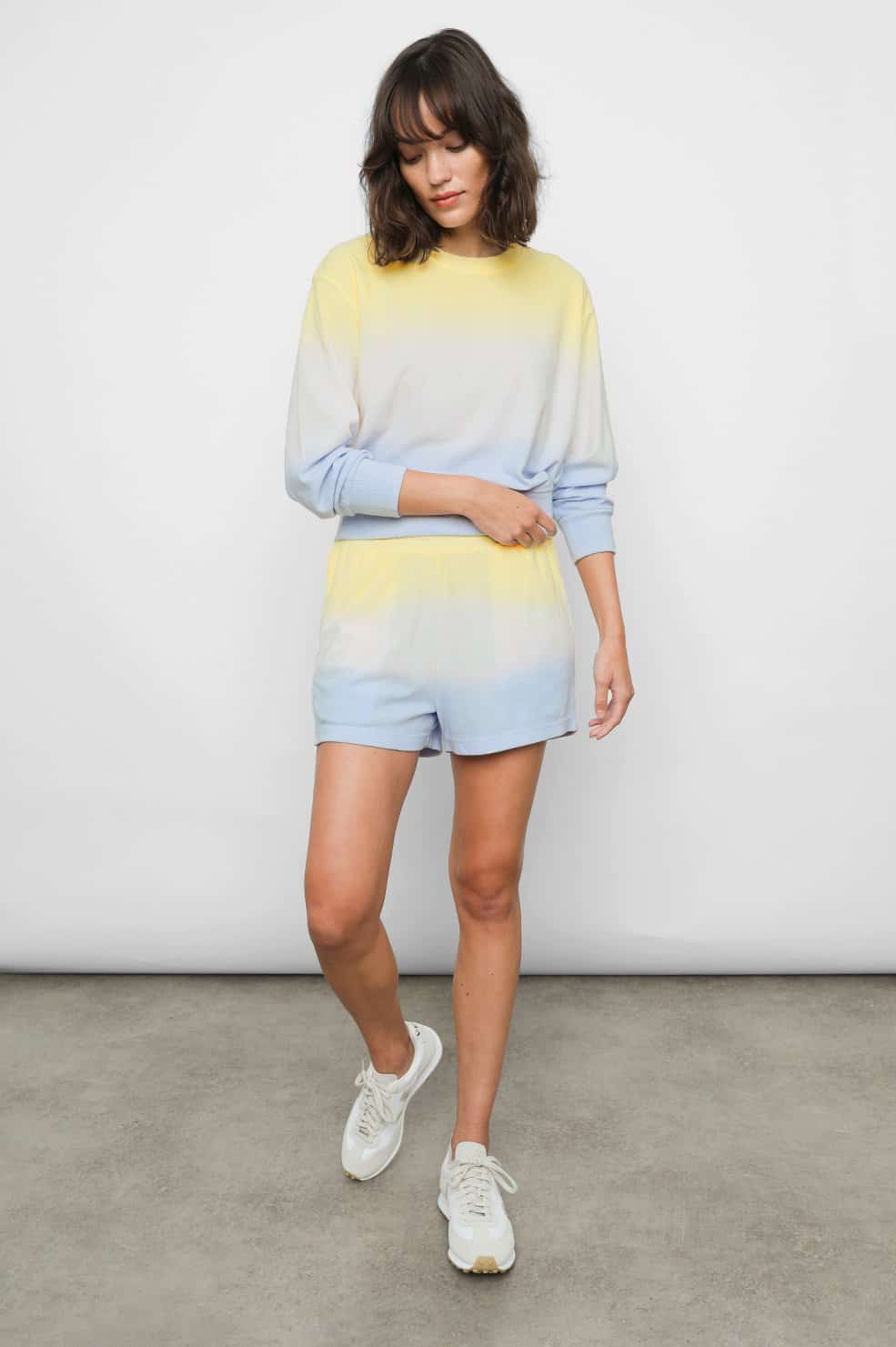 The Rails Ramona sweater in sky blue dip dye is a gorgeous sweater in a super plush, reverse terry cloth. The long sleeve, crew neck sweatshirt has a lovely sky blue and lemon yellow dip dye design and is an easy to wear, boxy fit, which makes it perfect for throwing on when the weather is a bit cooler. Team it with the Rails Jane shorts for the perfect casual summer or holiday outfit, and then throw it on with jeans when it gets a bit cooler for a fresh summer look.