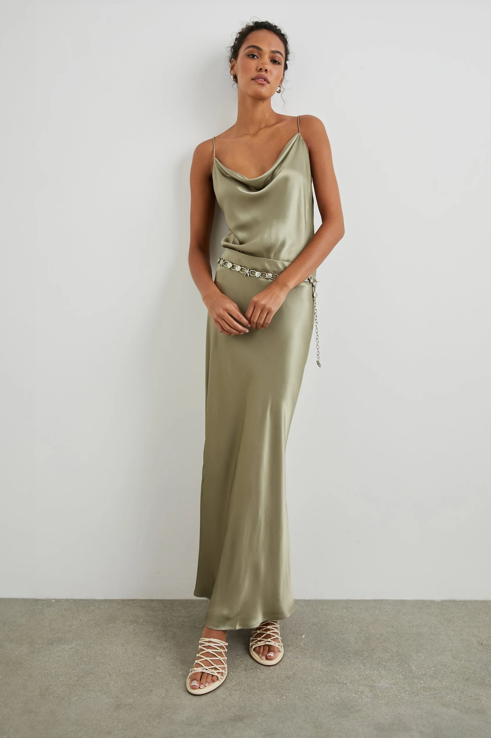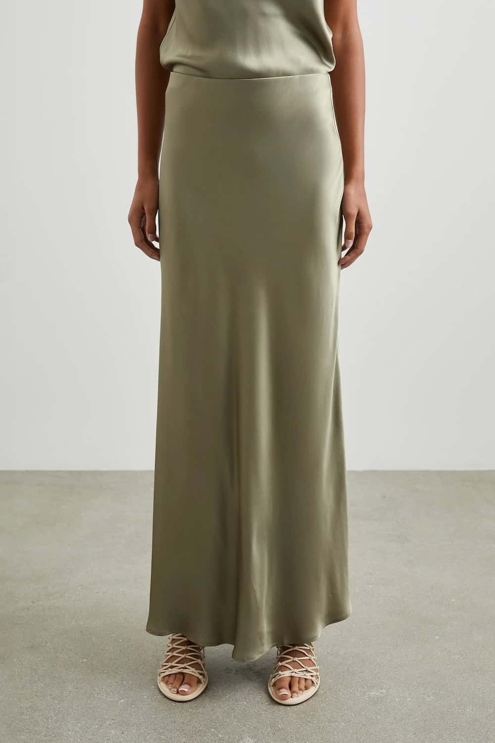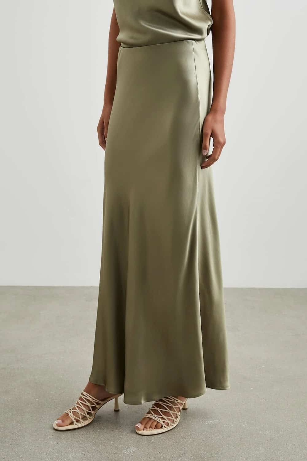 No closet is complete without a satin crepe skirt, and The Rails Romina Skirt Mermaid is ready to fill the role. Available in an almost-iridescent grayish-green, this style features a hidden elastic waistband and effortless bias cut. Pair with an oversized tee and trainers for a daytime look or heels for a glam evening style.