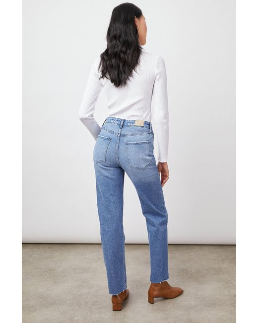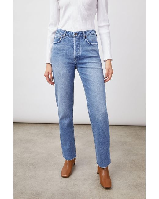 The Rails The Topanga Straight Jeans Delphinium are the ultimate jeans you need. The topanga in delphinium is a high waisted vintage inspired straight jean with a button fly and raw hem. The vintage blue is perfect to go with a fabulous Cocaranti shirt or blouse.