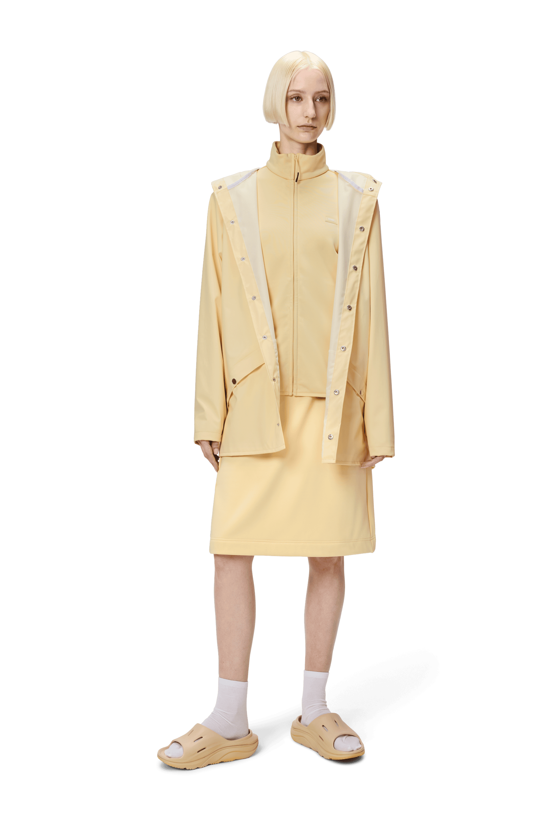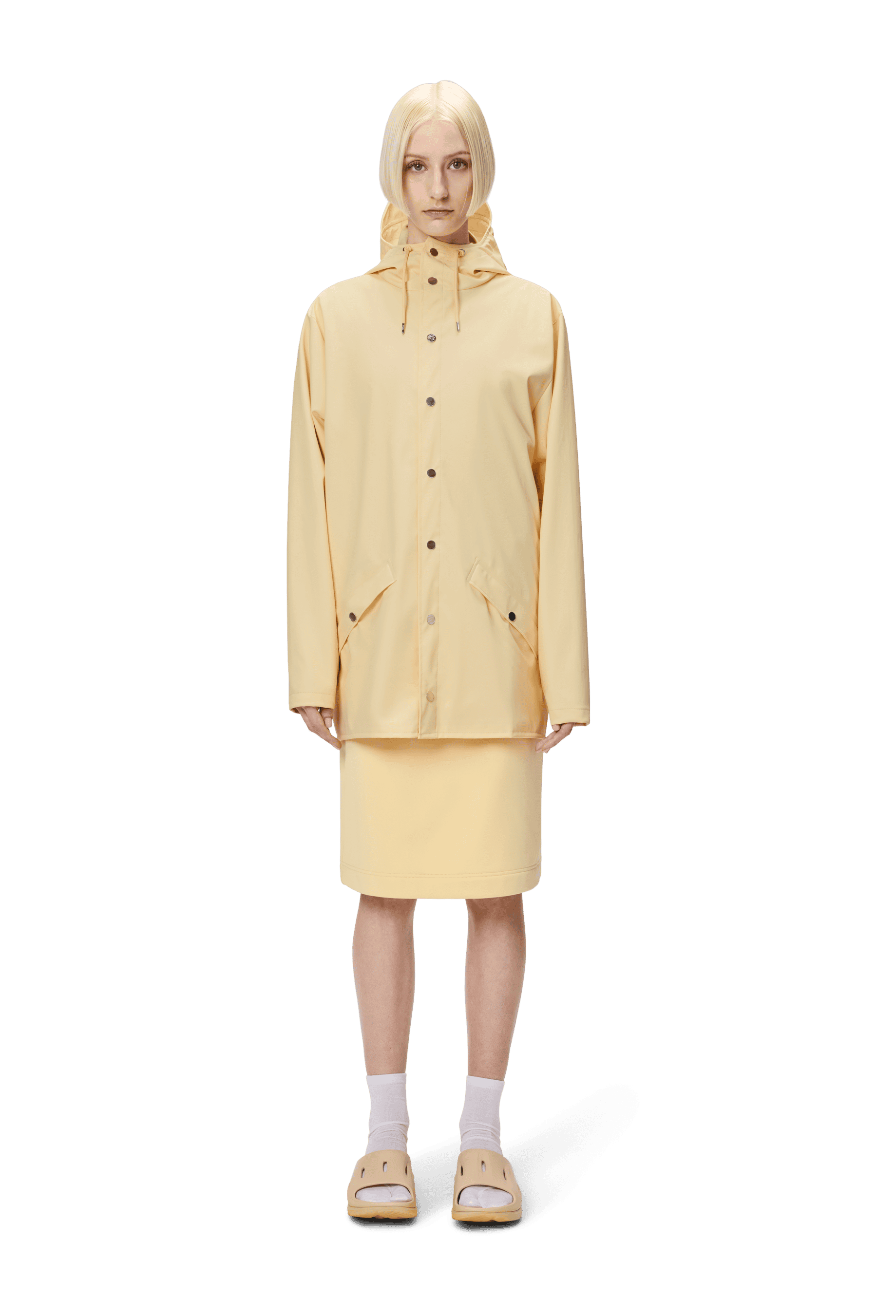 The Rains Jacket W3 in gleam is an ever-contemporary unisex rain jacket. Characterized by a minimal silhouette with high functionality in a gorgeous pale yellow colour.