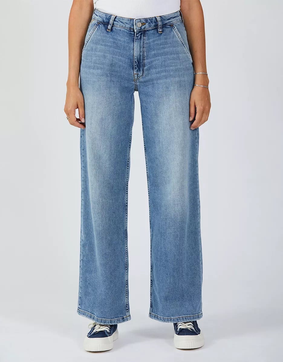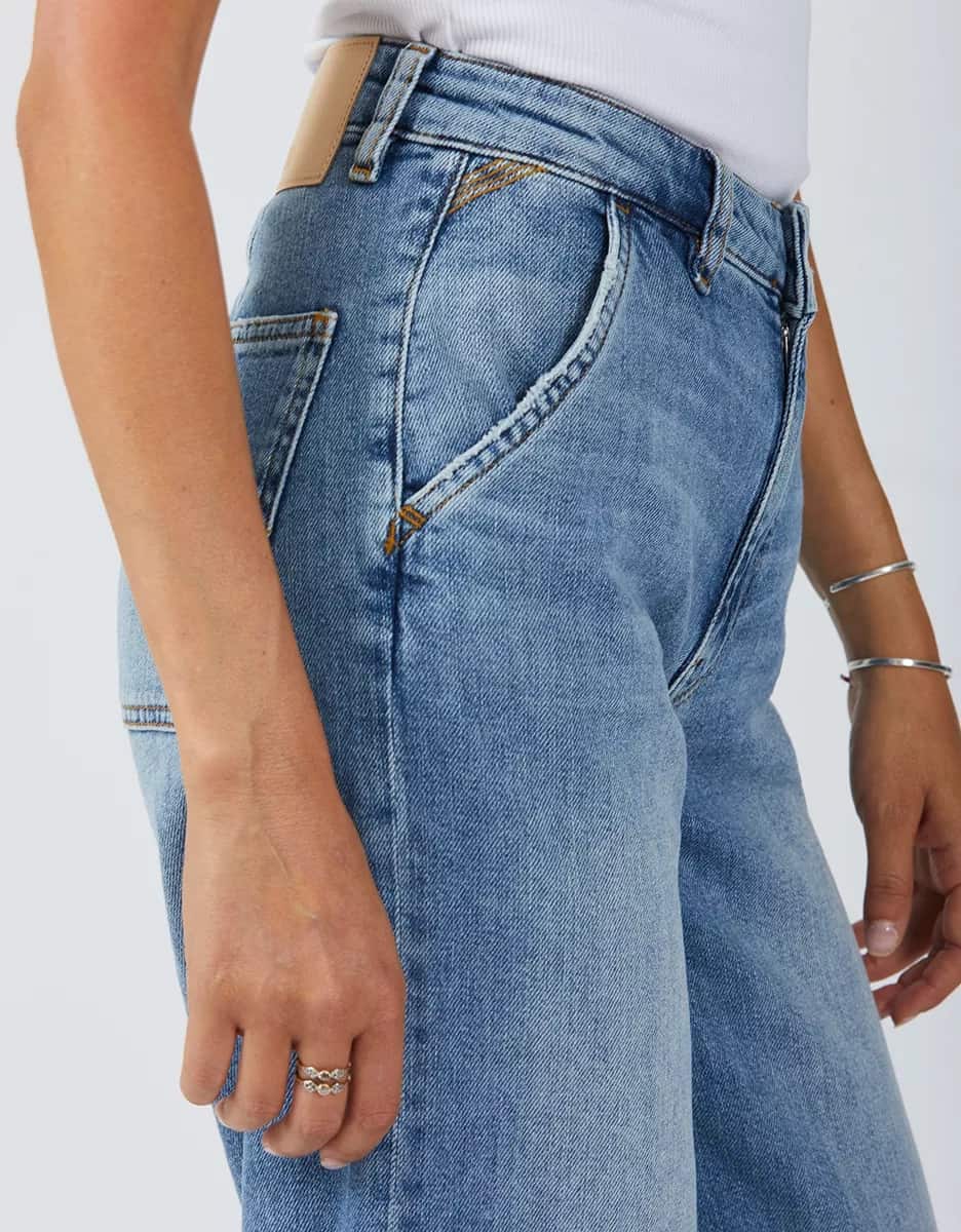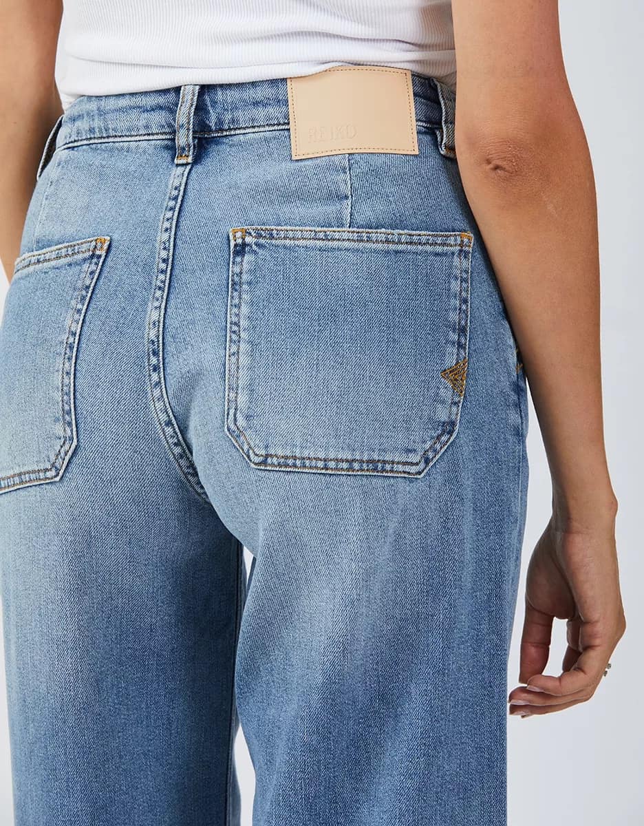 The Reiko Pom wide leg jeans in DNM V-455 are a 70's inspired jean. The Pom jeans are super soft, comfortable with a high waist that is flattering and feminine. Cut with a retro feel these jeans are perfect for wearing casually with trainers or dressed up with some kitten heels, vest and an oversized blazer.