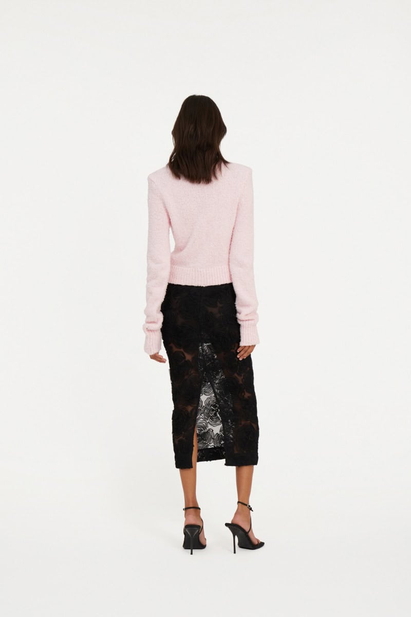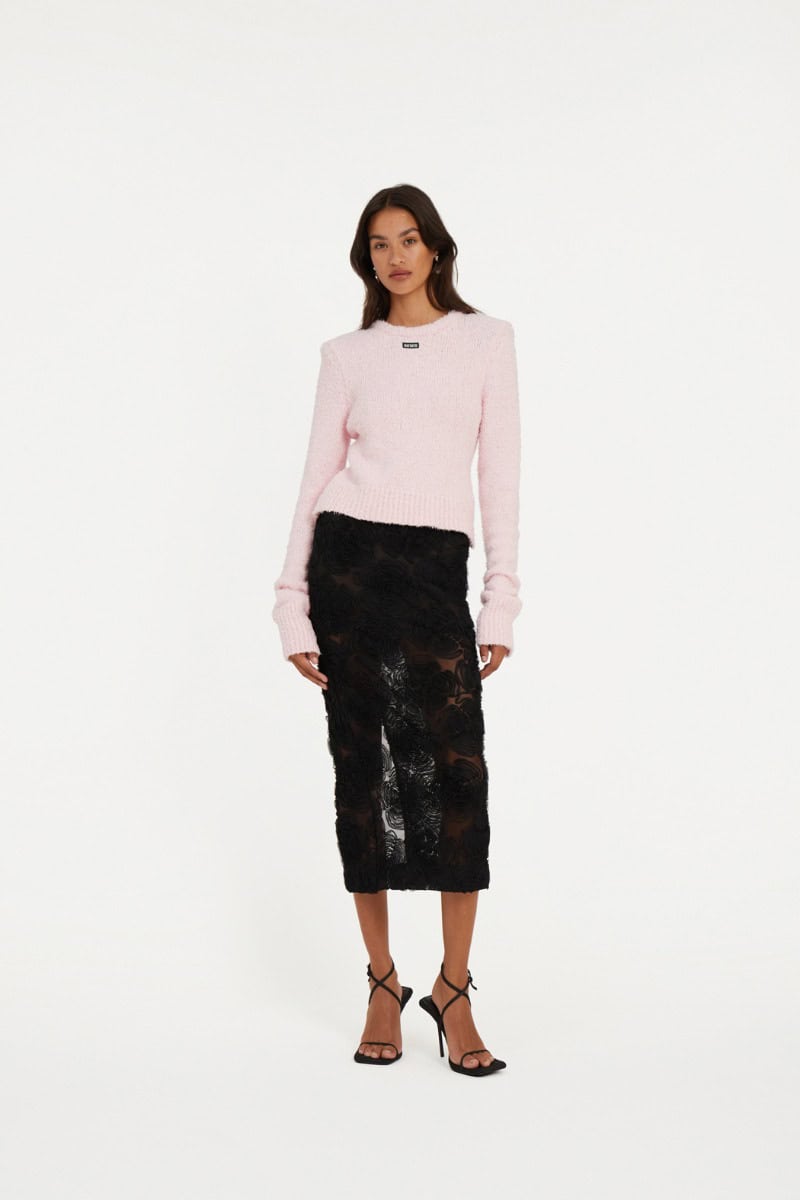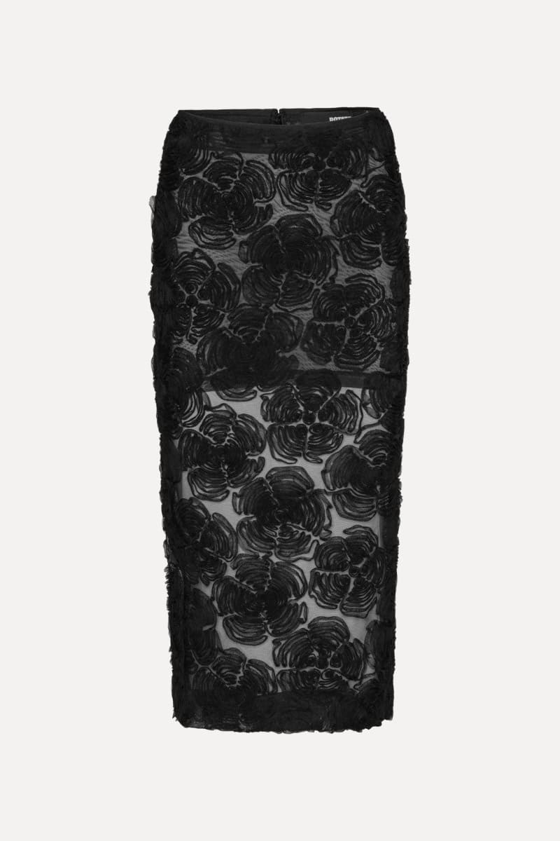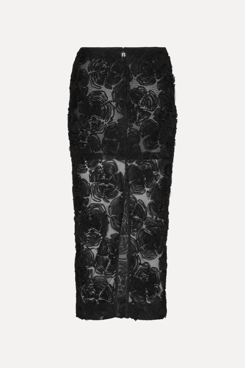 The Rotate Birger Christensen flower mesh pencil skirt in black is the perfect skirt to take you throughout the year. With a fitted silhouette and intricate floral embroidery, this semi-sheer mid length skirt is stylish and sexy at the same time. Style with the Rotate Birger Christensen Light Knit Logo Sweater Red and heels or flats for a seriously stylish look during the colder weather then switch to a t-shirt for a paired back look in summer.
