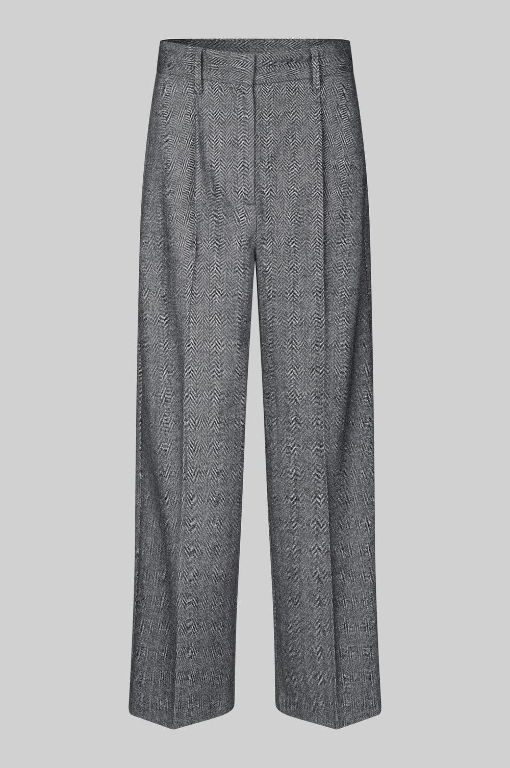 The Second Female Waleria Trousers Black are the perfect everyday trouser. Made in a soft wool blend. Featuring concealed zip, hook and button fastening. Two front pockets and two decorative pockets at the back. Pleats and belt loop at waist. Regular waist with extra-wide, straight leg.