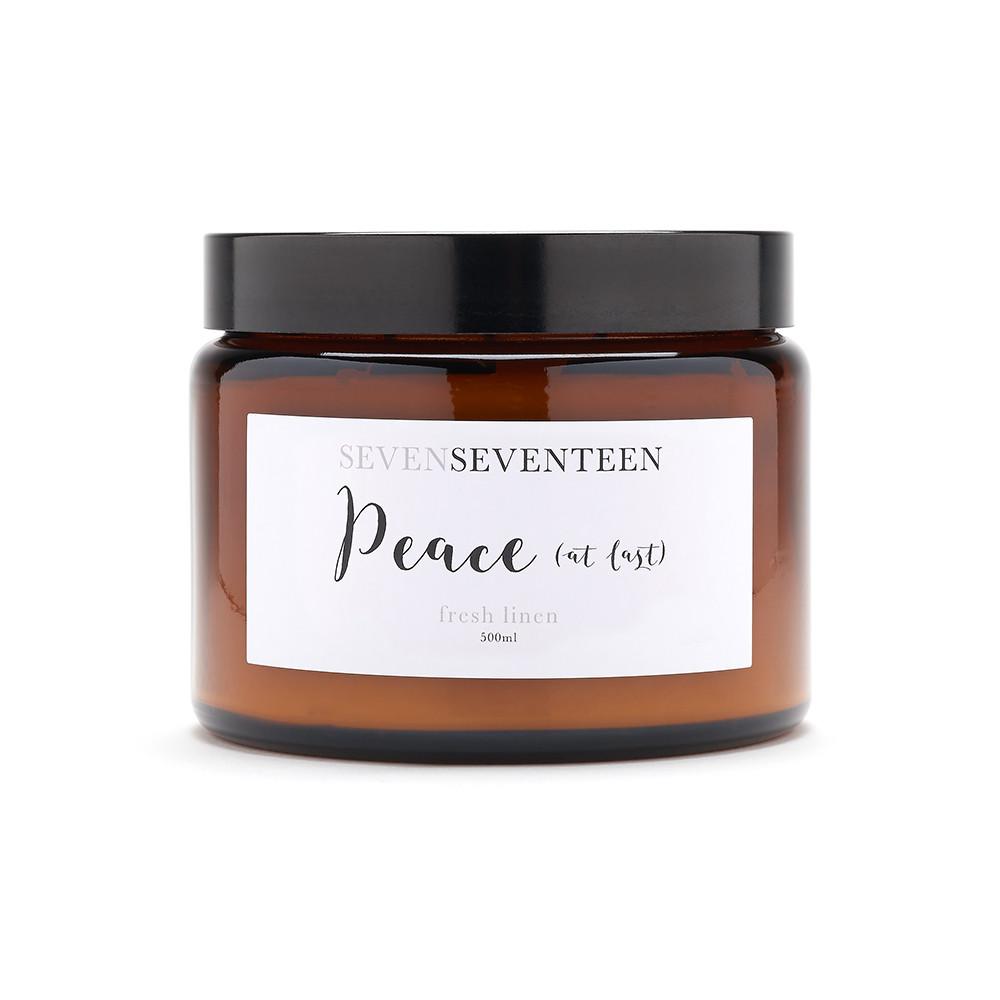 This Seven Seventeen Peace at Last Candle in Fresh Linen has a sublime fresh linen fragrance which will transport you beneath newly laundered sheets in an instant. With sumptuous scents, plant-based wax and super burn times, SevenSeventeen candles are all about finding calm amidst the chaos. Hand-poured in England to ensure even fragrance distribution, they come with their own soothing mantras to restore sanity and fill your home with the right kind of pong.Each candle is presented in a recycled glass pharmacy jar and finished with cotton wicks. The screw-top lids keep out dust and the jars can be re-used for storing small items or displaying flowers.Burn times (approx):