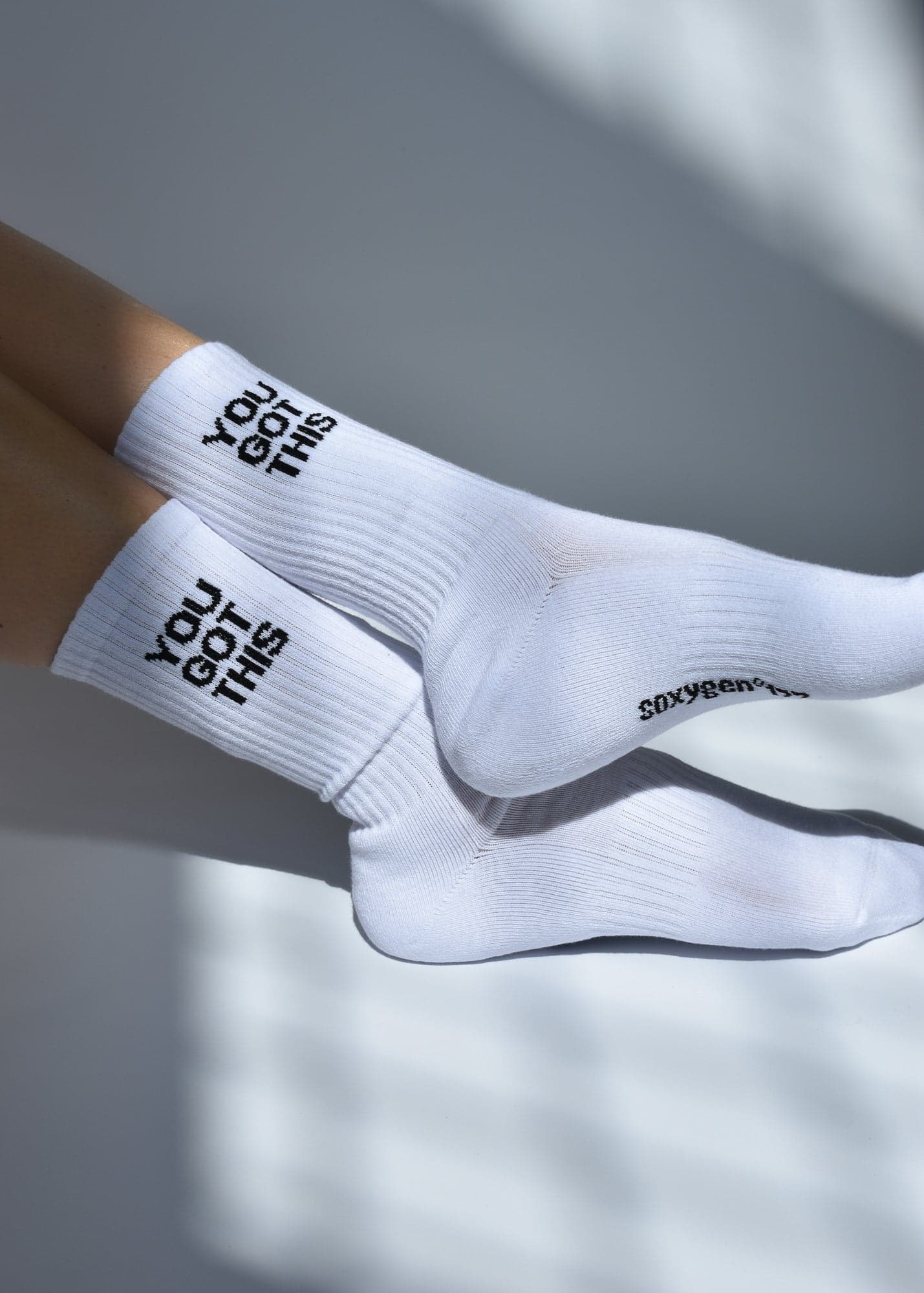 The Soxygen You Got This Crew Sock in Frost is the perfect ribbed sock for wearing over your leggings or just day to day to put a smile on your face and add some humour and sarcasm to your daily outfit.