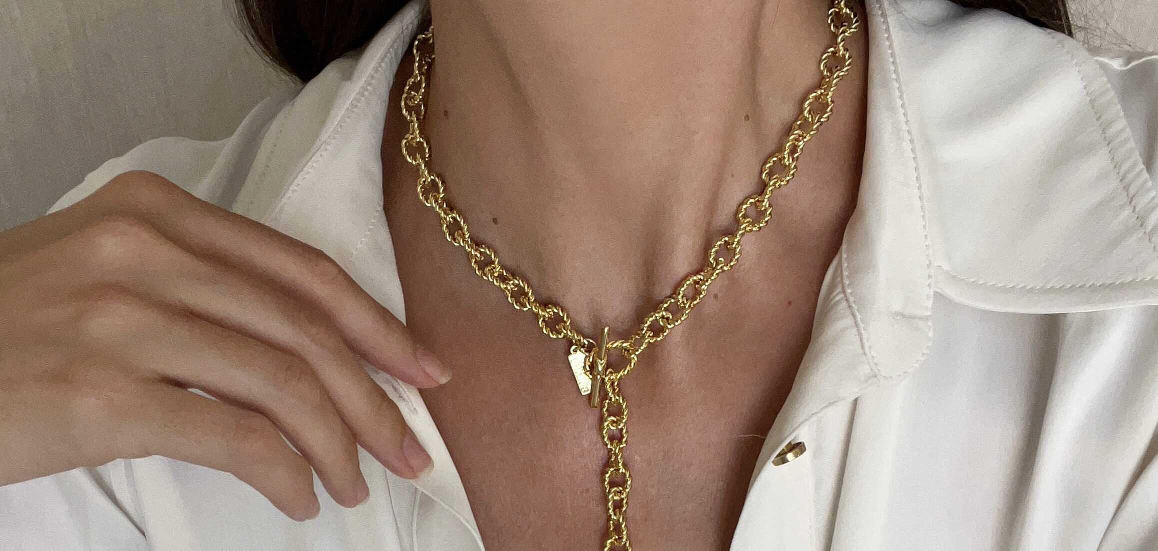 The Talis Chains Twist Chain Lariat necklace is a 60cm chain that can be worn in three different ways; wear as a tight lariat around your neck, fasten a bit lower down or fasten at the bottom loop to wear as a regular chain necklace. This simple yet stylish necklace is perfect for adding a bit of drama to your outfit and will instantly elevate your look. Style with open collared shirts and straight jeans for a seriously stylish look.