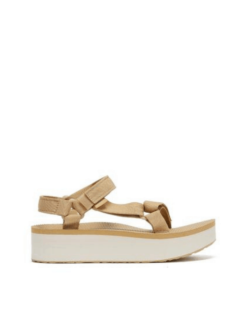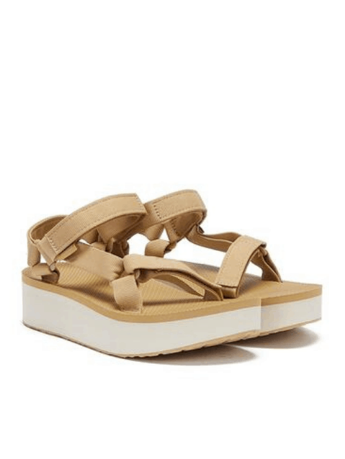 The Teva flatform universal sandals in lark adds a bit of height to the brand's best selling universal sandal. The earth-friendly Unifi® Repreve recycled polyester webbing upper is extremely durable and dries quickly after getting wet whilst the easy hook and loop closure comes on and off quickly to ensure that you get the fit just right. These neutral sandals are perfect for summer and add a stylish twist to any outfit.