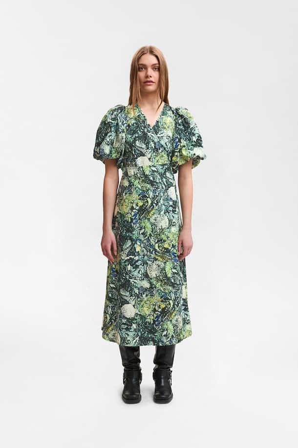 The Gestuz Tikagz midi dress is a beautiful, versatile dress that can be worn day to night. Team with a chunky knit and boots for a effortlessly casual look and then with an MDK leather jacket and heels for a stylish evening look.