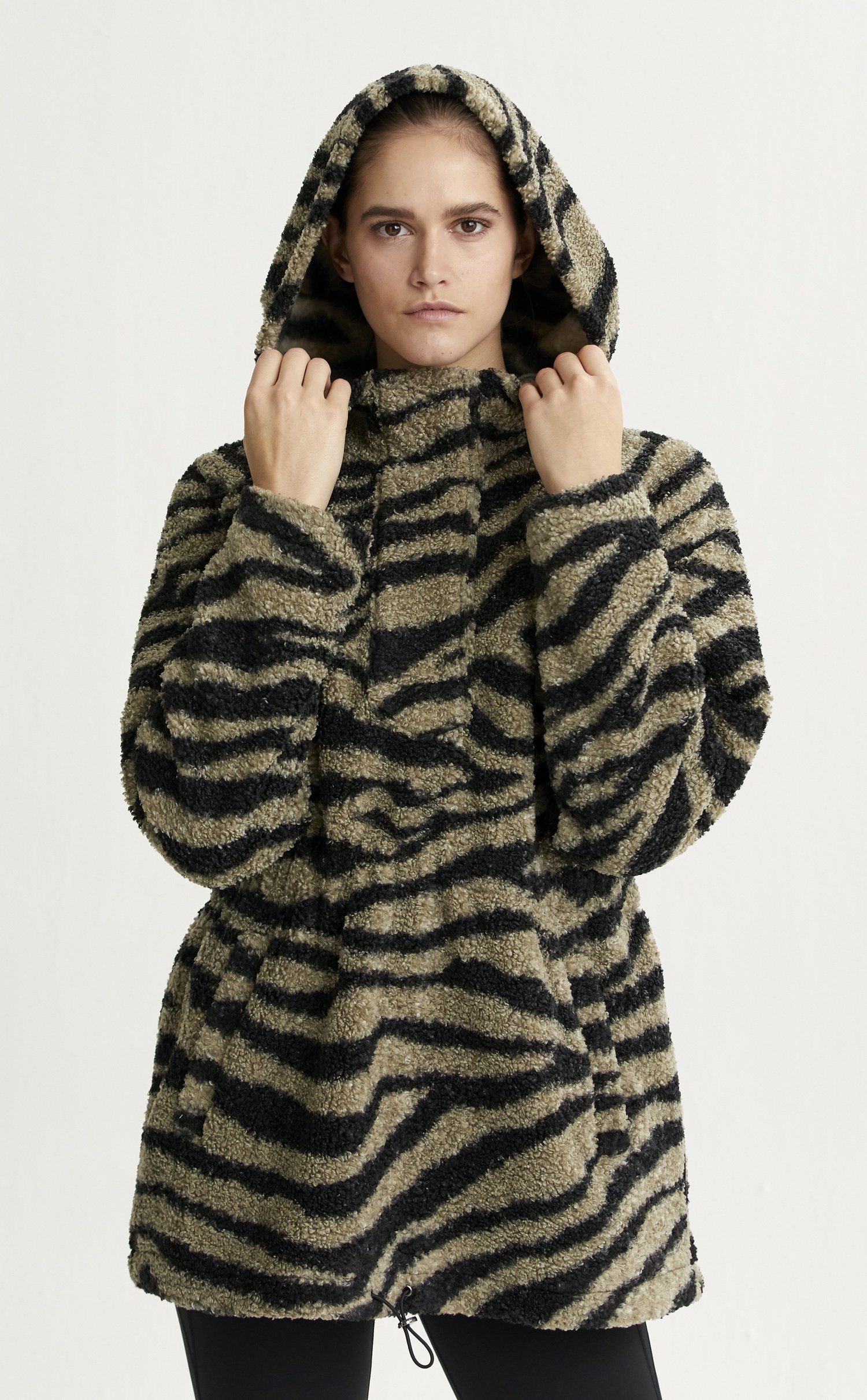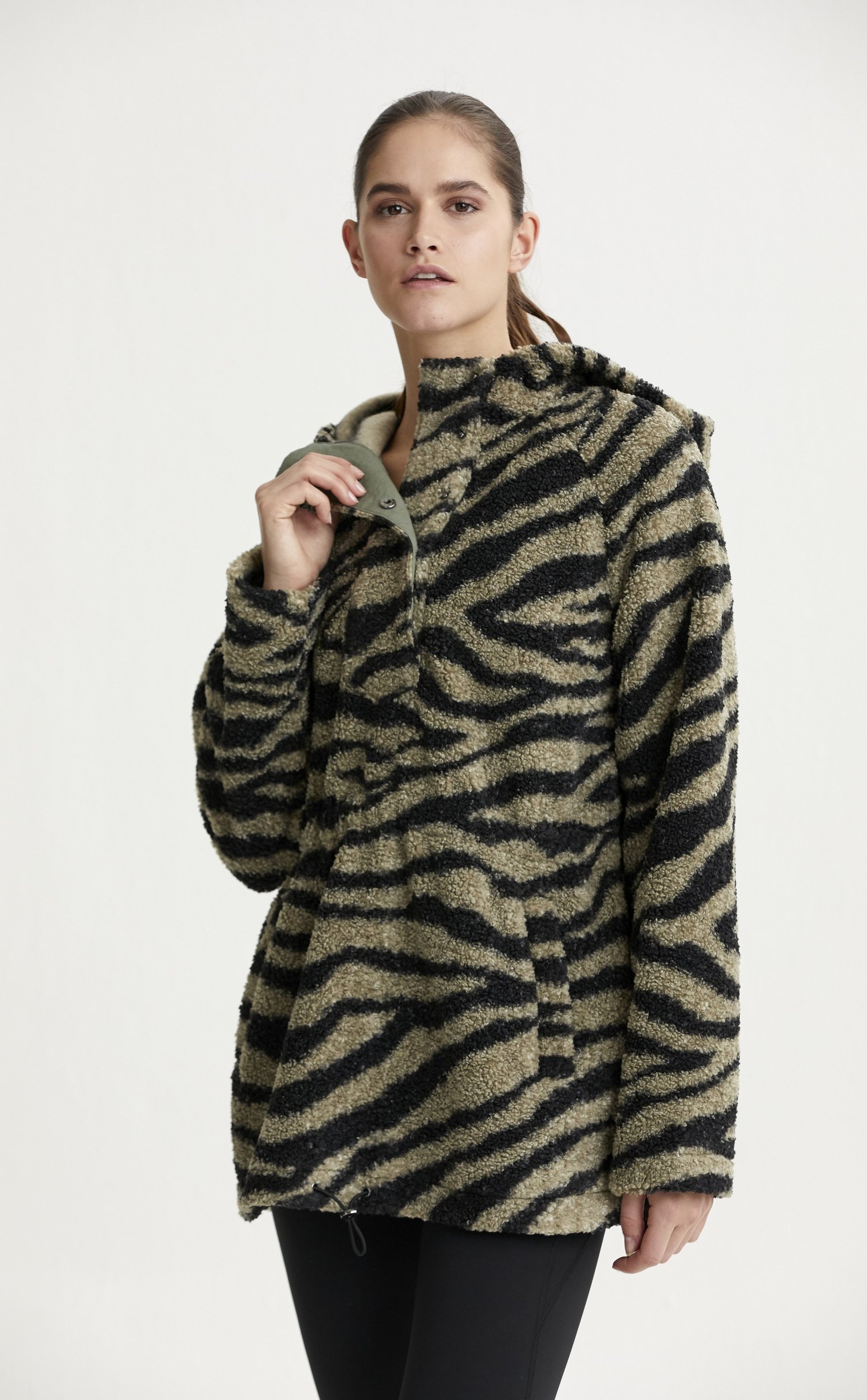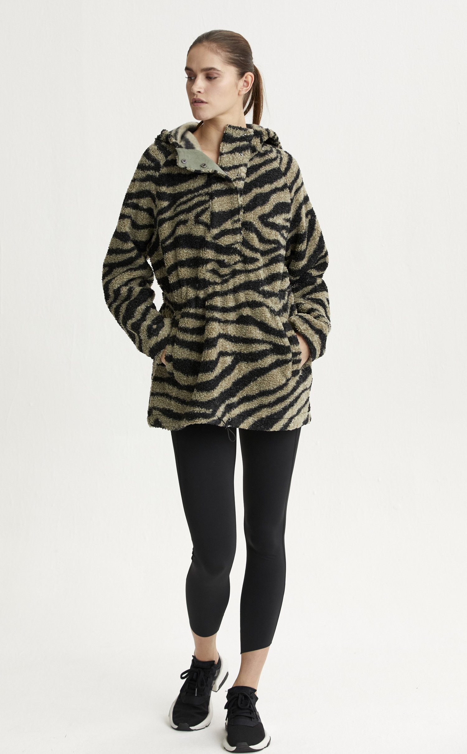 The Varley Whitfield Pullover in Gravity Grey is a hooded style with half snap button detail and an elastic gathered waist to create a flattering silhouette. Cut from our lightweight sherpa fabric, this pullover style is soft, warm and surprisingly light. Features side welt pockets, raglan sleeves, and drawstring at the hem to adjust the fit.