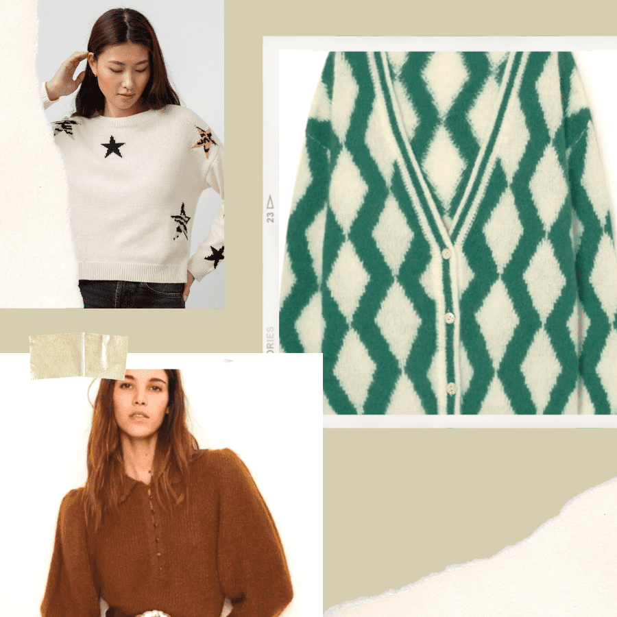 One of our favourite looks for keeping chic yet cosy between Christmas and the New Year is our knitwear. Our Rails Perci Jumper Neutral Animal Stars is a relaxed fit jumper with dropped shoulders and a thick ribbed trim at cuffs and hem. The ivory background makes it the perfect jumper for styling with your denim for a stylish look. Another favourite is our American Vintage Pinoberry Cardigan in a stunning festive green shade. The jumper is perfect for throwing on over dresses or for wearing with your favourite denim for a stylish winter look. Also, our BA&SH Tile Jumper in bronze is a stunning, fluffy, wool blend jumper with 3/4 length voluminous sleeves. The jumper has a ribbed trim detailing at the cuffs and hem, and fastens halfway down the front with small buttons. This knitwear is perfect dressed up or dressed down, team with leatherette trousers or a sparkly skirt for a cosy and stylish outfit.
